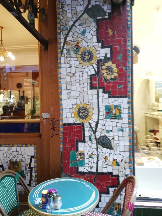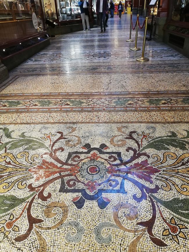 奥の方に行くと壁にもモザイクがあるアートなアーケードです。