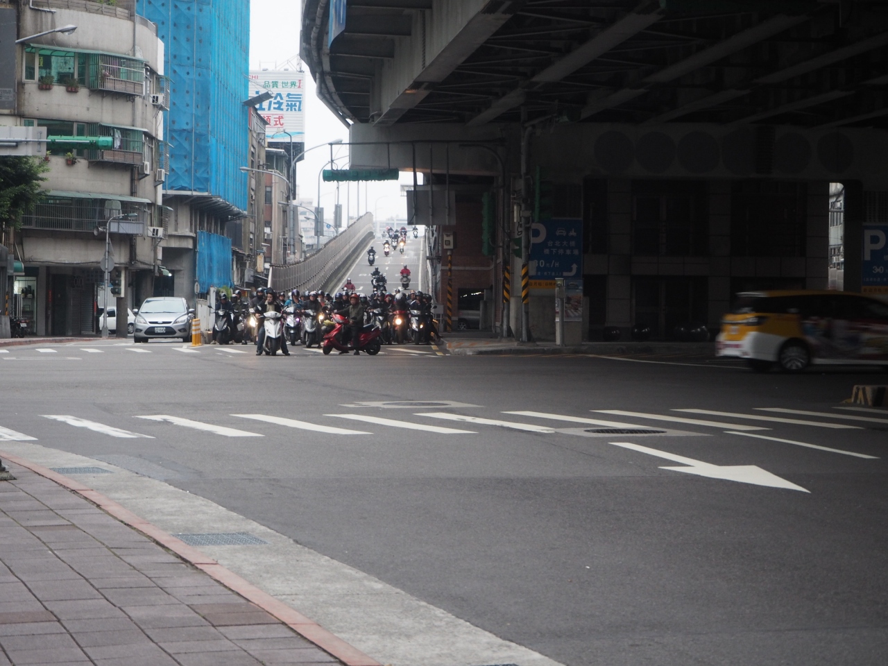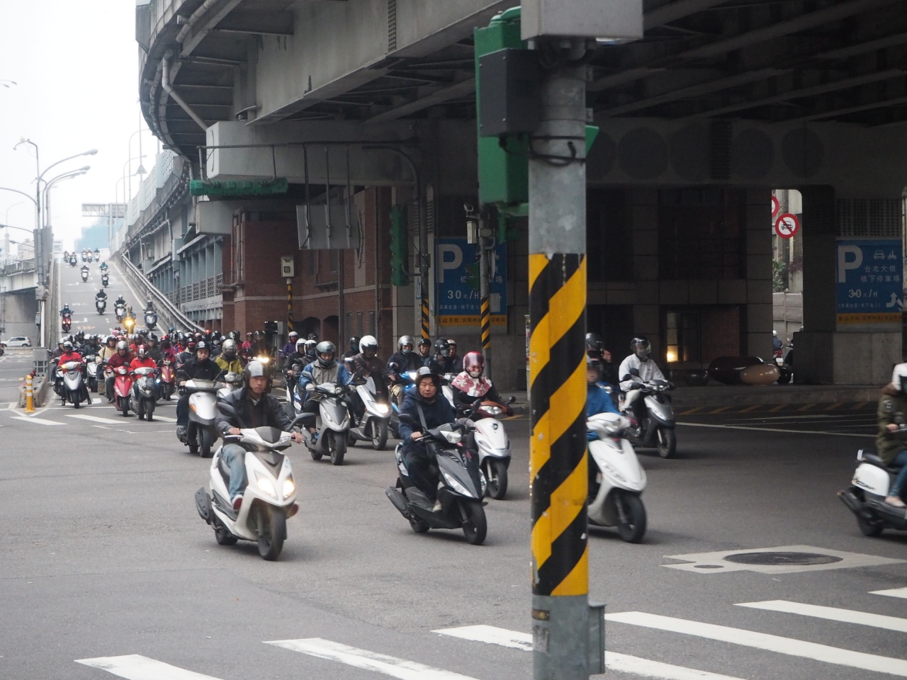 民権西路を台北市内からそのまま西に行くと、ちょうど三重(新北市)と台北を分ける川があり、それにかかっている橋です。その橋の名物と言えばその大量のバイクです。動画でもその風景がたくさん投稿されており、自分の目で見たく訪れましたが、噂通り大量のバイクが走っていました。