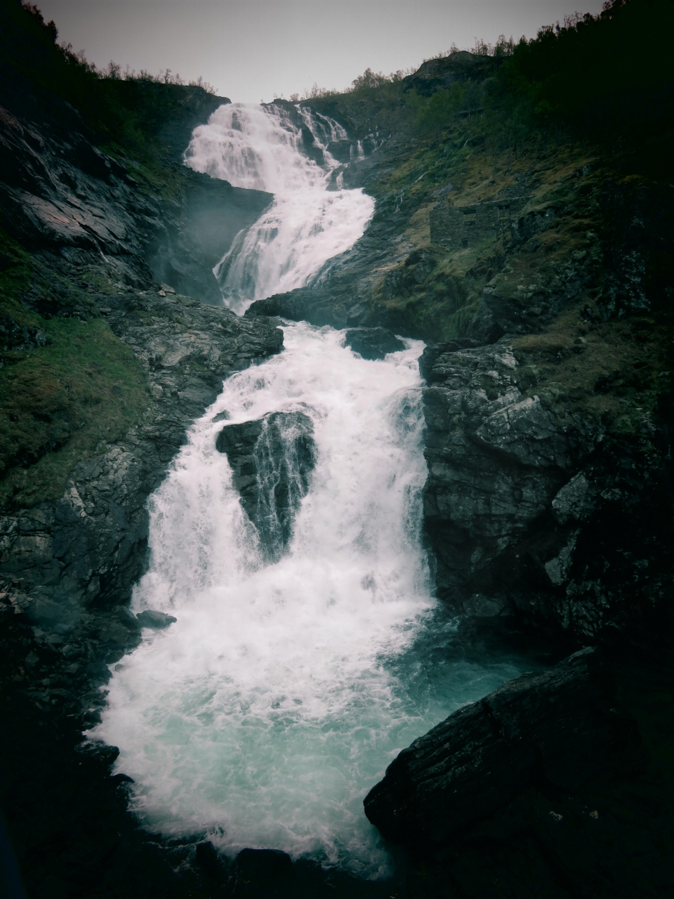 ミュルダール駅からフロム鉄道に乗り、10分程電車を走らせ、トンネルを電車の先頭が通過したところで電車が止まります。