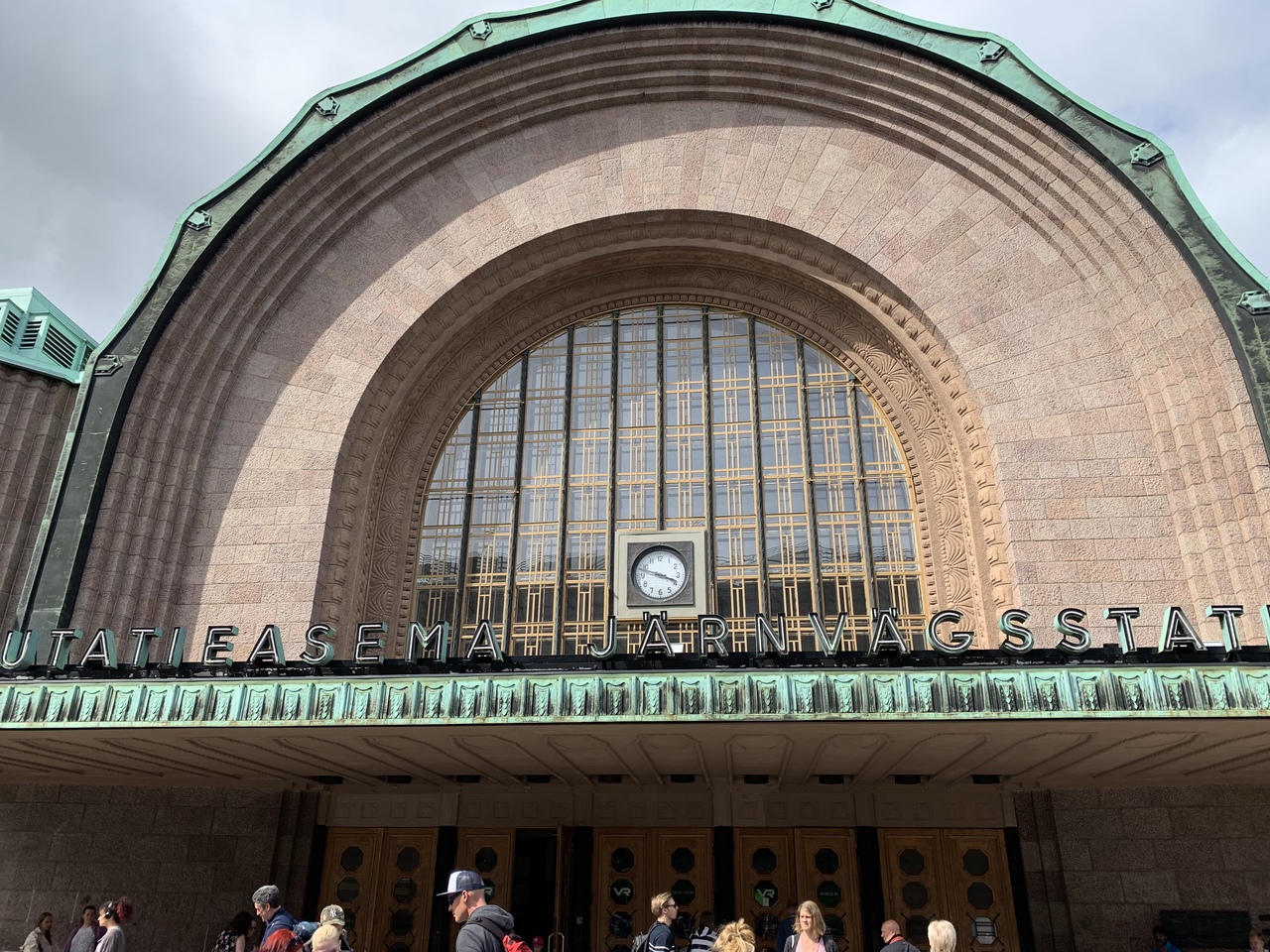 ヘルシンキ空港から、電車で乗り換えなしで30分弱で到着しました。トラムやバスの停留所が周辺に固まっていて、交通アクセスの中心とも言えそうです。大きな駅ではありませんが、遠くから見ても目立つ存在感のある建物でした。