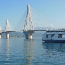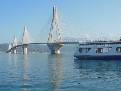 ペロポネソス半島北部のリオ埠頭からギリシャ本土側のアンティリオへ、コリント湾をフェリーで渡りました。この区間には現在、全長3km弱のリオ・アンティリオ橋が架かっており、車ならわずか5分で通過します。