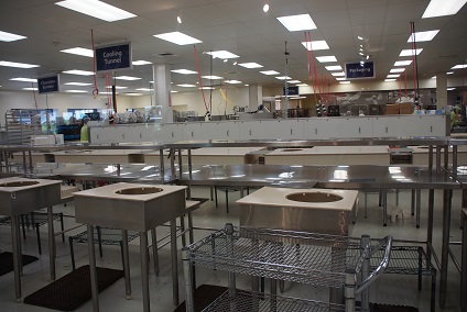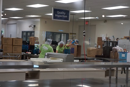 簡単な工場見学できるよう製造ラインがガラス越しに見えるのですが、休み中なのか奥のほうにスタッフさんがかたまってキャッキャしていました。どこの国も同じですね。