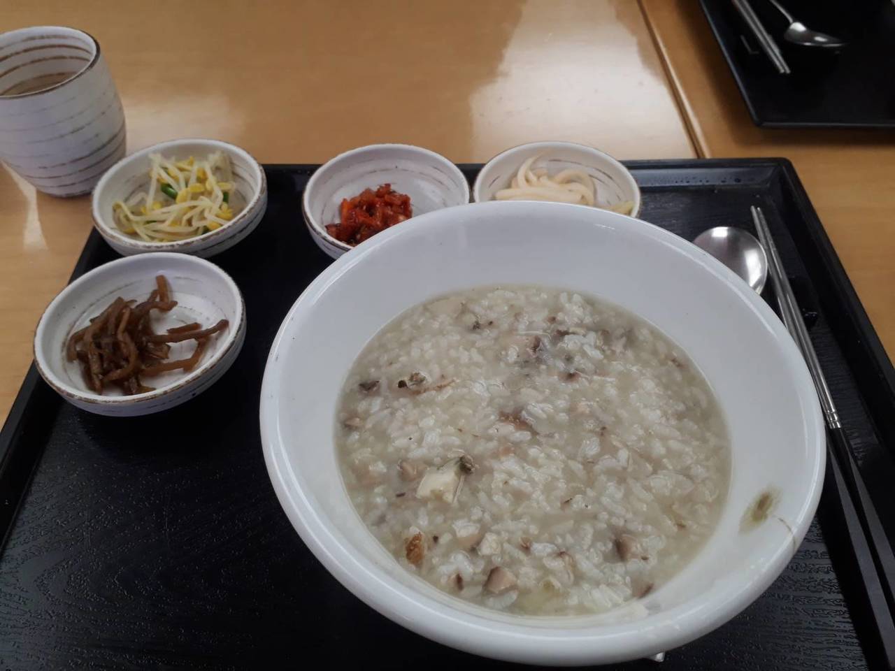 席についてオーダー。あわびのお粥を食べました。朝からキムチも食べられます。あわびのコリコリとした食感がたのしい。胡麻油のきいたお粥でした。朝から食欲マックスであっという間に完食。やさしいあわびの出汁がきいた一杯です。