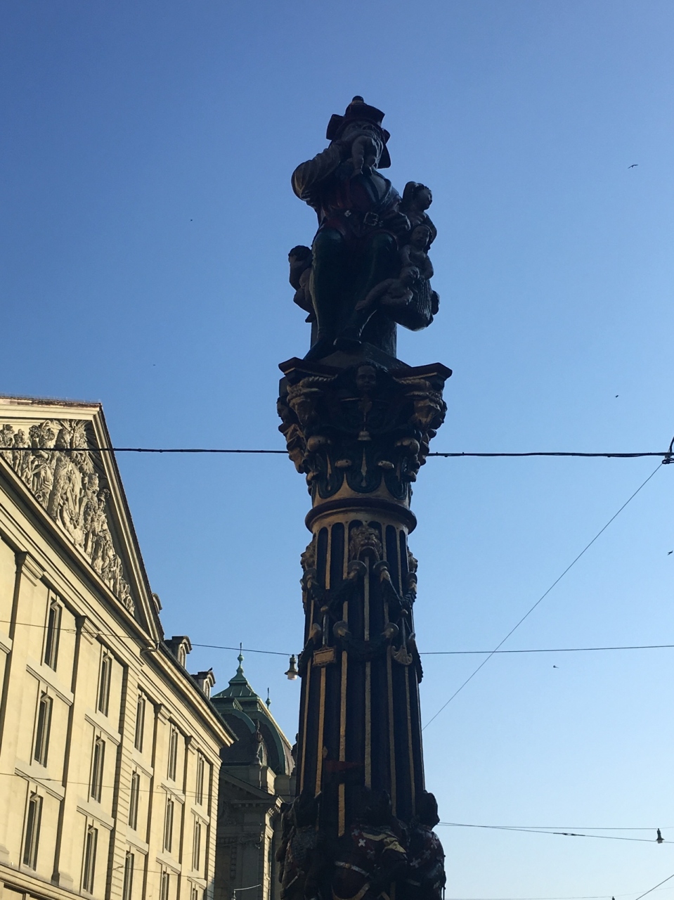 ベルンには100箇所以上の噴水(水飲み場)があるらしいのですが、これがいちばん有名な噴水ではないかと思います。子供を食べる鬼と食べられるのを待っているかのような子供達の像です。有名なのでグーグルマップに表示されたため、場所は下調べしなくても簡単にアクセスできました。