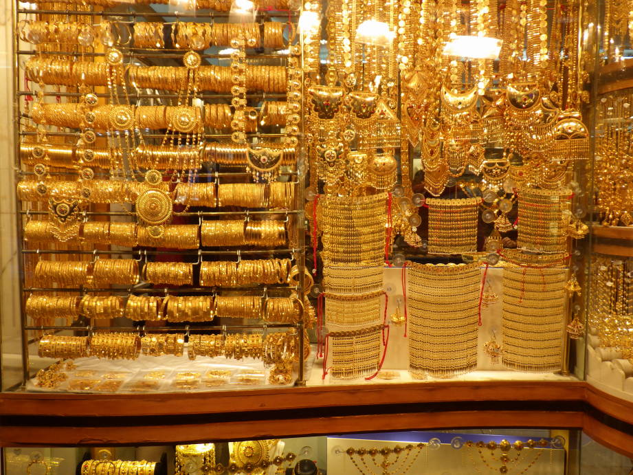 リビエラホテルから歩いて20分くらいでゴールドスークに到着しました。スークの中は金製品を扱う店が軒を並べ、どの店のショーウインドーもまばゆいばかりの輝いた金製品でおおわれていました。買えるわけもなく冷やかしで店に入る勇気はなかったので、ショーウインドーだけ見て歩きましたが、それなりに楽しめました。