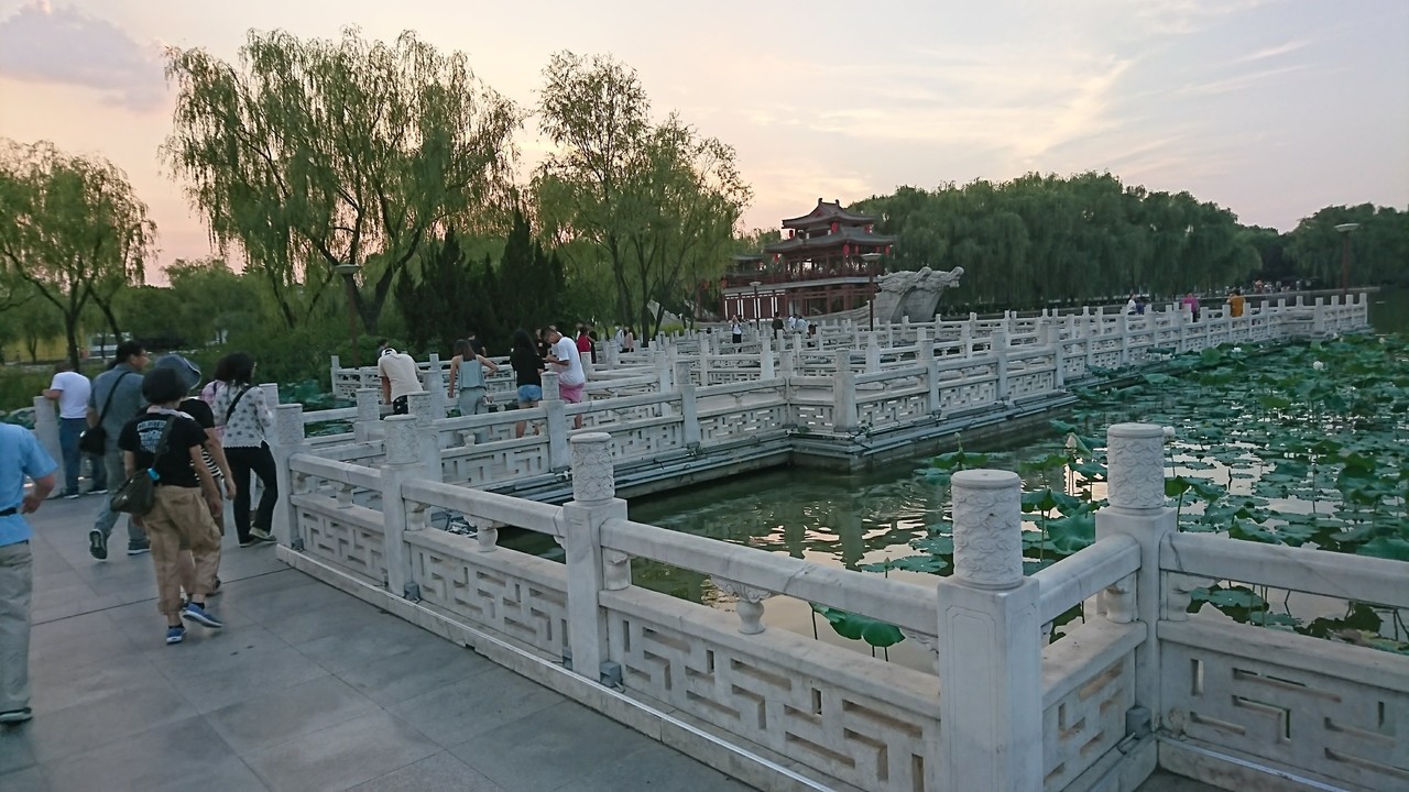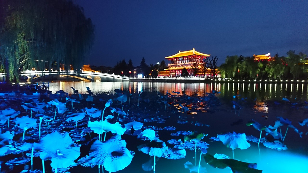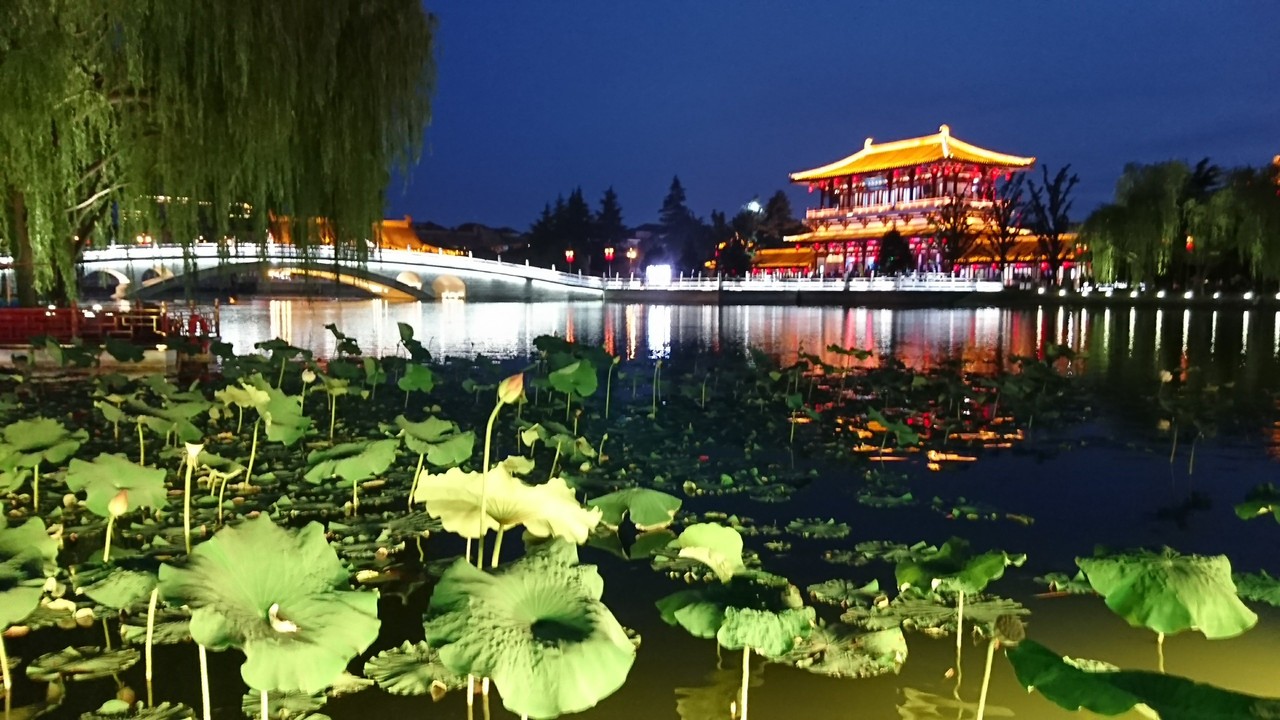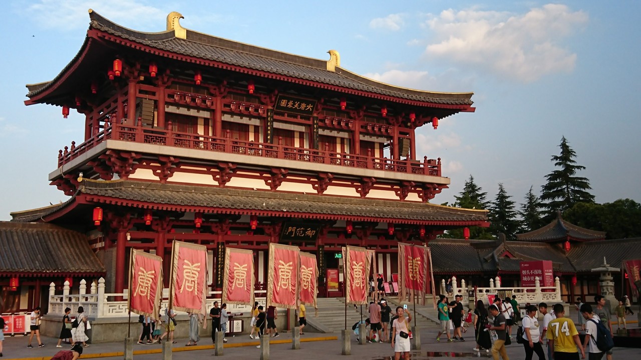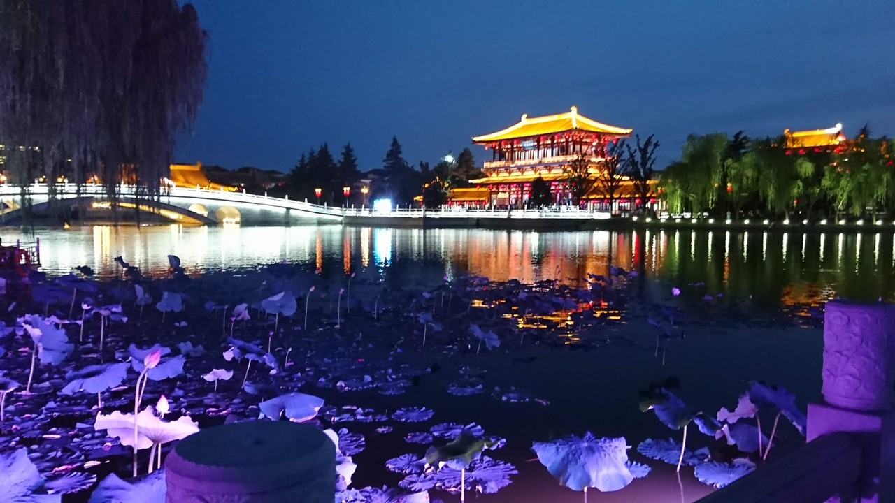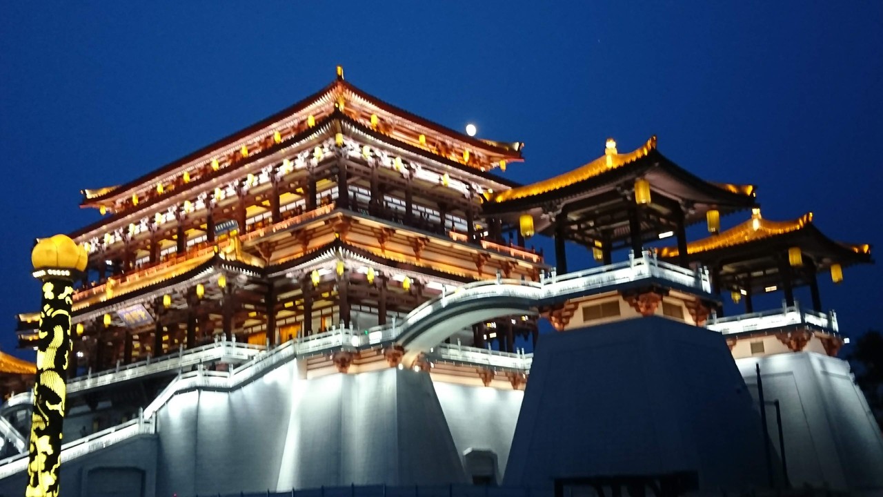 西安ツアー最終日の夕方にオプショナルツアーで訪れました。唐の時代の庭園や建物を再現したテーマパークです。