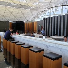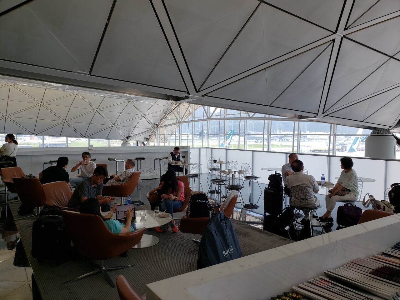 仕事柄いろいろな空港ラウンジを利用してきたけど、はーそ面ではこちらが1,2を争う充実ぶりかな。バーカウンター、コーヒーラウンジ、ヌードルバーなど用途に応じていろいろな施設があります。特にお酒のメニューの豊富さには圧倒されました。さすがキャセイですね。ただ職員の対応はあまりよくなかった。