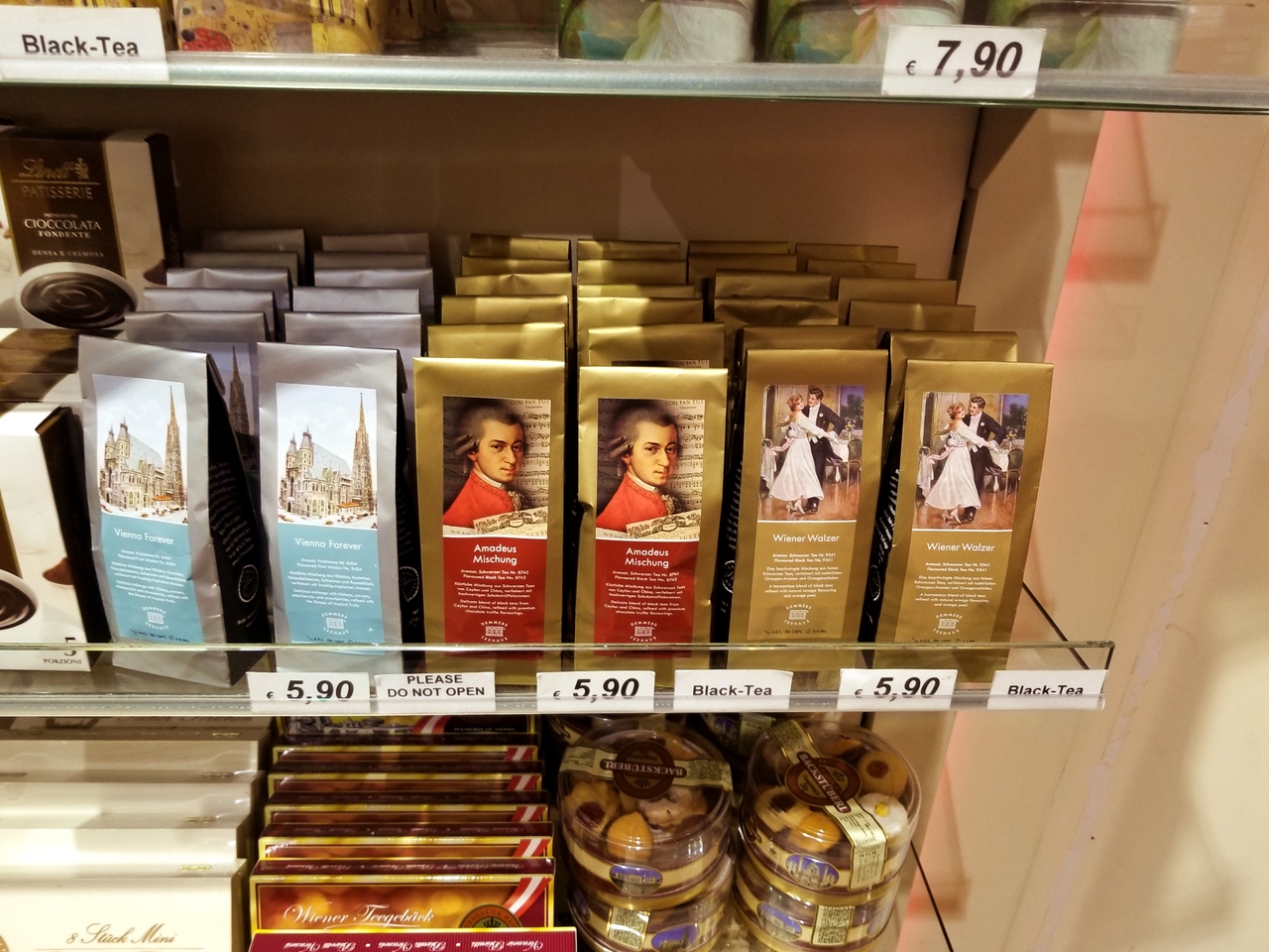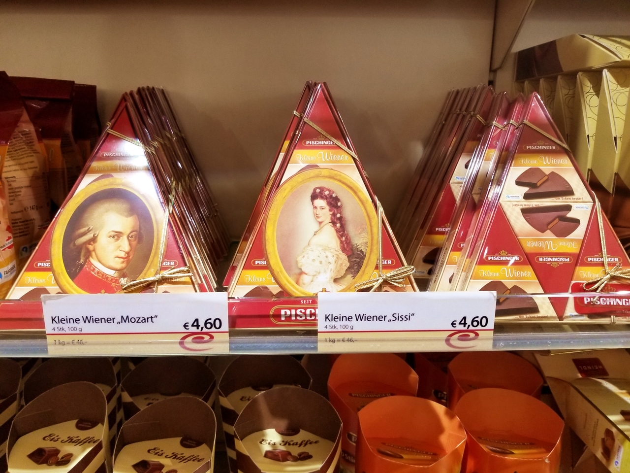 ウィーンを代表するモーツァルトやシシィがモチーフになったお菓子等が沢山販売されいる。値段はやはり観光客の値段だ。チョコレートやマンナマジパン等があり