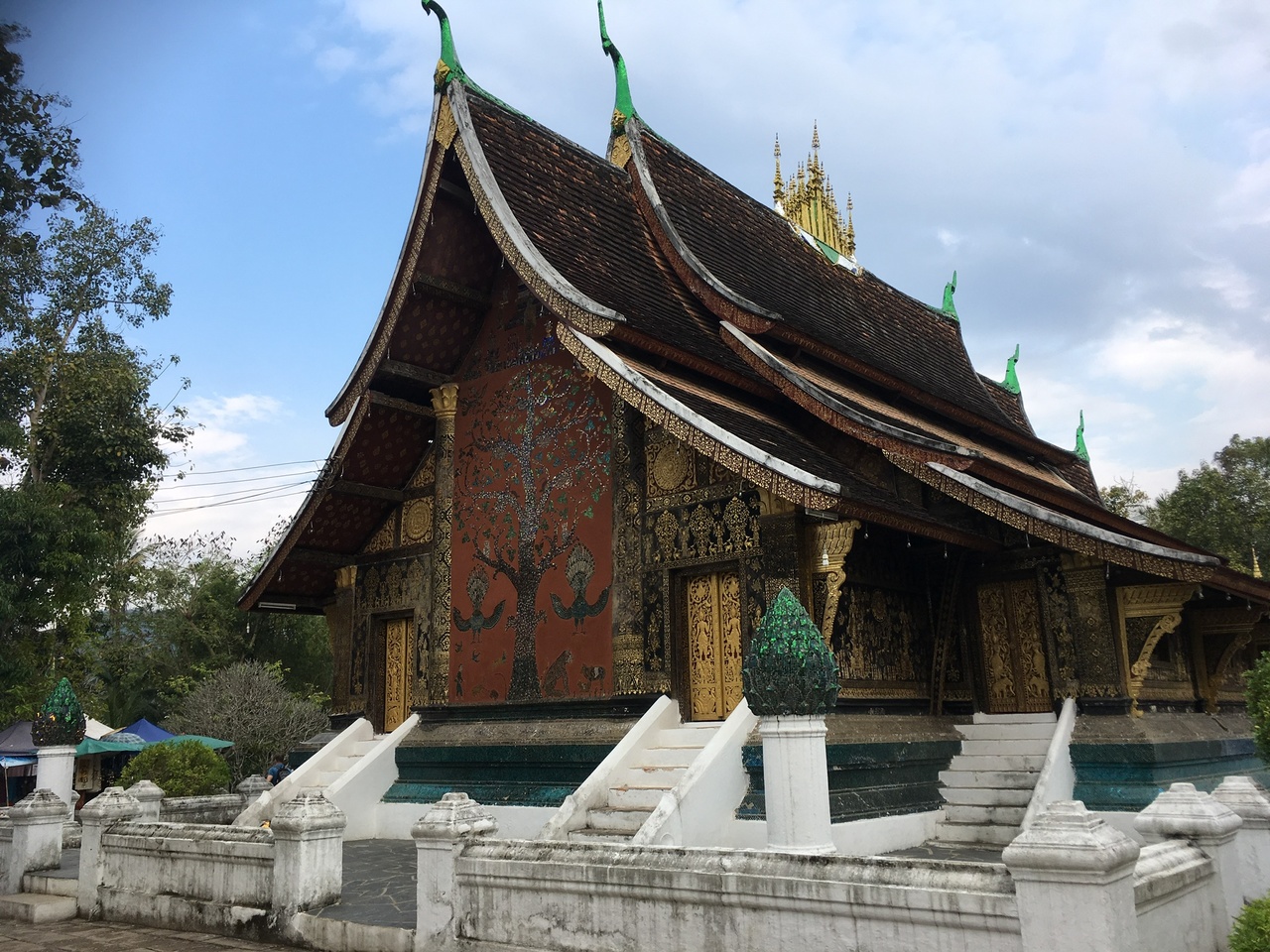 ルアンパパンは寺院が沢山ありますが、このお寺は屋根の形状が幾重にも重なった、独特な建築様式(ルアンパパン様式)をしています。壁面には精密な絵画が見事に描かれています。中の装飾も素晴らしかったです。兎に角外観が美しいので、ルアンパパンに来たら必ず訪れたい寺院です。