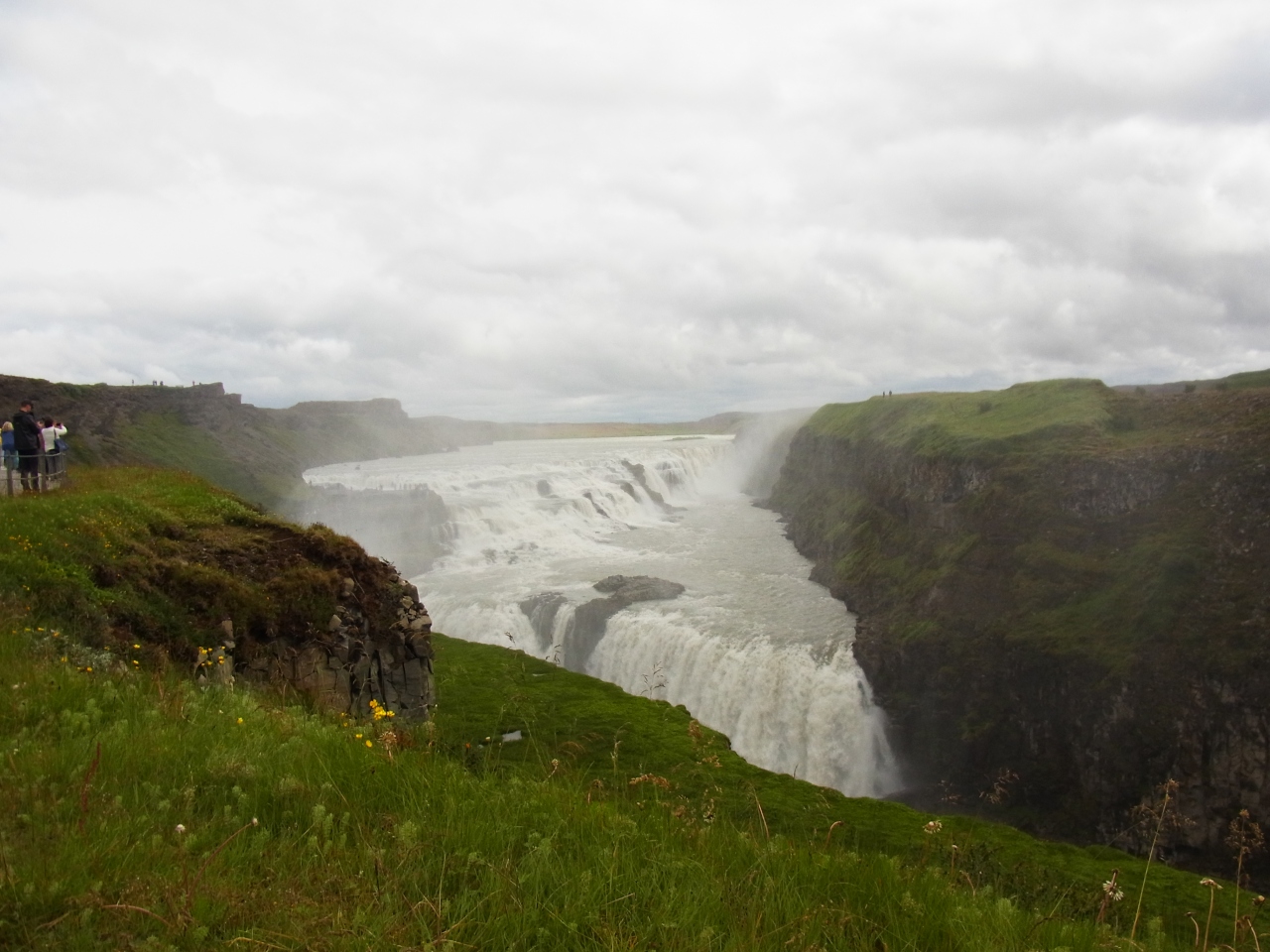 レイキャヴィーク発のゴールデンサークルツアーに参加して訪れた観光スポットの一つがグトルフォスです。滝の脇には遊歩道があり、滝のそばに近づいて眺めることができます。天気が良いと、虹が見えるということですが、訪問時は曇っていたので、虹は見えませんでした。駐車場に、トイレもある売店が建っています。