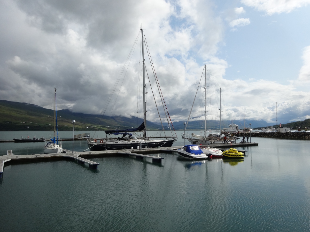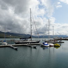 エイヤフィヨルズゥルは、アイスランド北部で見られるフィヨルドの一つです。アークレイリは、そのフィヨルドでつくられた湾に位置する街です。アークレイリの空港も、そのフィヨルドの地形にあるので、飛行機が山に囲まれた湾に降り立つ感じがありました。日が差すと、フィヨルドの穏やかな眺めがきれいでした。