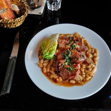 ランチセットメニューは21ユーロからですが、鴨が食べられないので単品で牛のカスレと鱈、子どもにはオニオンスープを。
