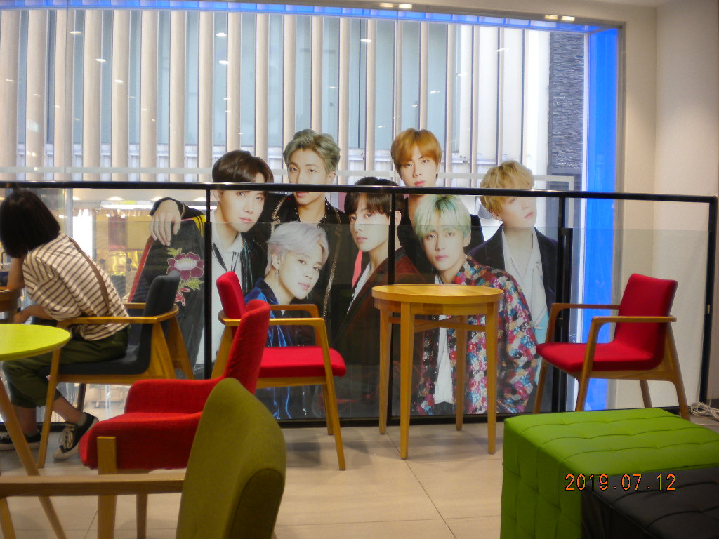 娘の希望でシートマスクを何にしようかと探しましたが偶然ここに娘の好きなBTSのマスクがあると言うので店員さんに聞くと日本語が通じるラッキー!人気の保湿性のあるものを購入、二階で無料のコーヒーサービス!主人は大喜びで休みました、興味ないですからね!