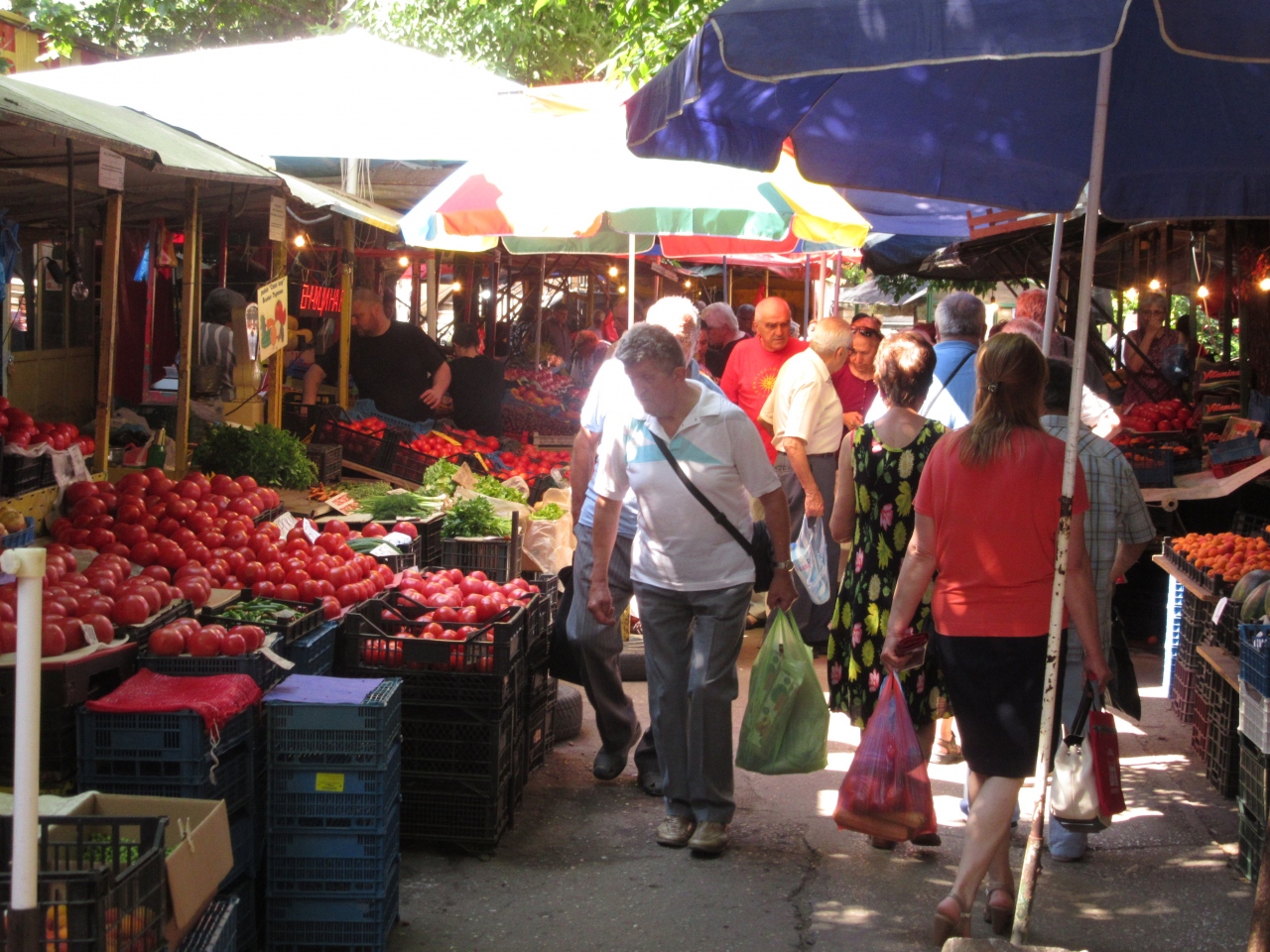 なお,市場に隣接して小型のスーパーもあるが,大規模なスーパーマーケットへ行く必要がある場合は,ここからアフロガーラ・ザパット(西バステーション)方向へ20分ほど歩くと「BILLA」「Kaufland」「Lidl」などが集中する大きなラウンドアバウトがある。