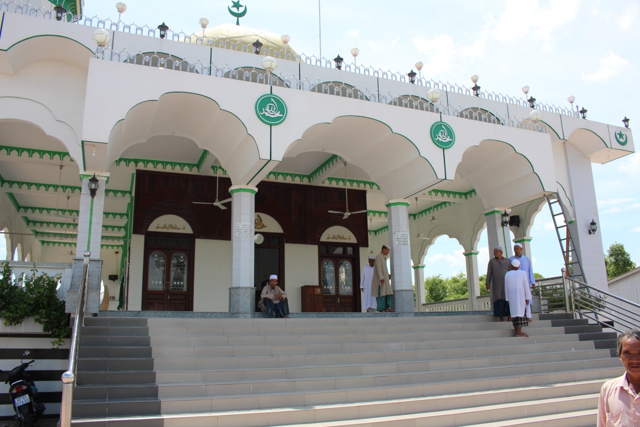 チャウドックに多く住むムスリムのチャム族。チャウドックからはバサック川を渡った対岸に多く住んでいる。橋もかかっているし、フェリーでも渡れる。モスクが多く色芋ベトナムでは見られないような緑を基調としたものが多い。