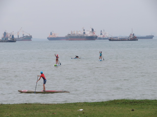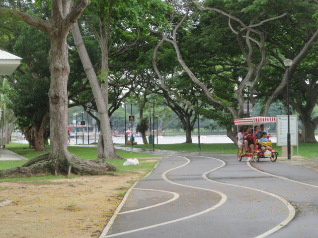 MRTパヤレバー駅前から路線バスを利用してマリーンパレードロード沿いまで行き歩いて海岸まで出ました、公園は細長くて広い公園、整備された散策路やサイクリングが出来るロードがあります、池があり水上スキーのようなスポーツをしている人がいました、公園内には何軒もカフェやシーフードレストランがあります、海を見ながら食事が出来ます、私は食事はしませんでしたがジュースを飲みました、帰りも路線バスを利用してMRT南北線のベドック駅前に出ました。