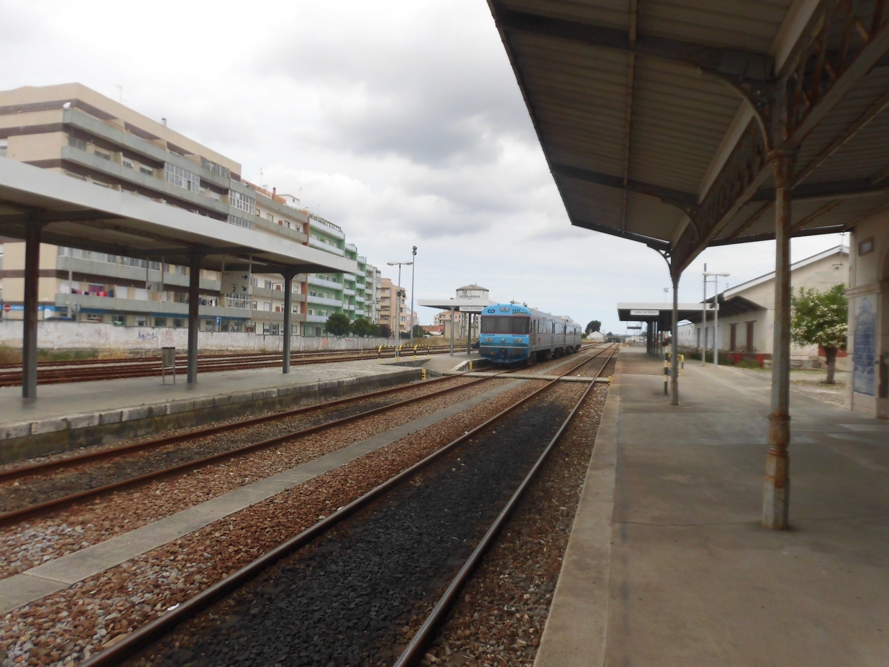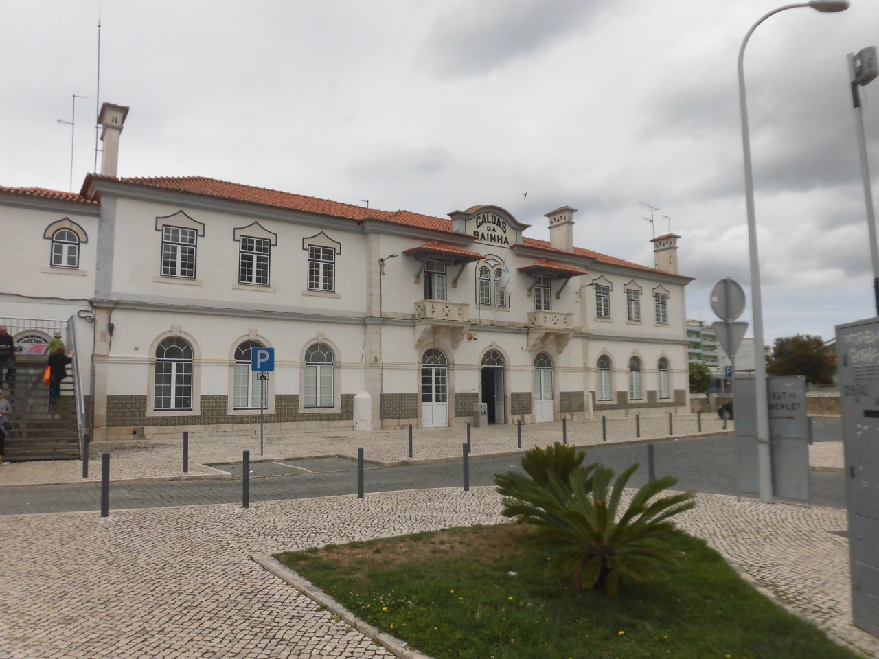 バス・ターミナルから徒歩10分くらいです。リスボンからの鉄道の本数はかなり少なかったのですが、駅舎は2階建てで思ったより立派でした。温泉が華やかだった頃の遺産でしょうか? プラットフォームは閑散としていました。