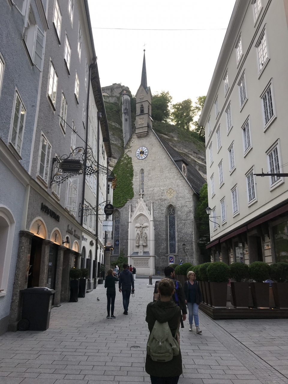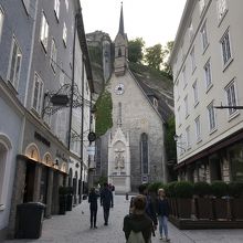 ゲトライデ通りをに山側に向かって歩くと突き当たりにある教会です。通りが終わりに近づくと、教会の全体像が正面に見えます。建物と尖塔の大きさがちょっとアンバランスで、それが逆に印象に残る教会でした。通りと併せた光景の景観も良かったです。