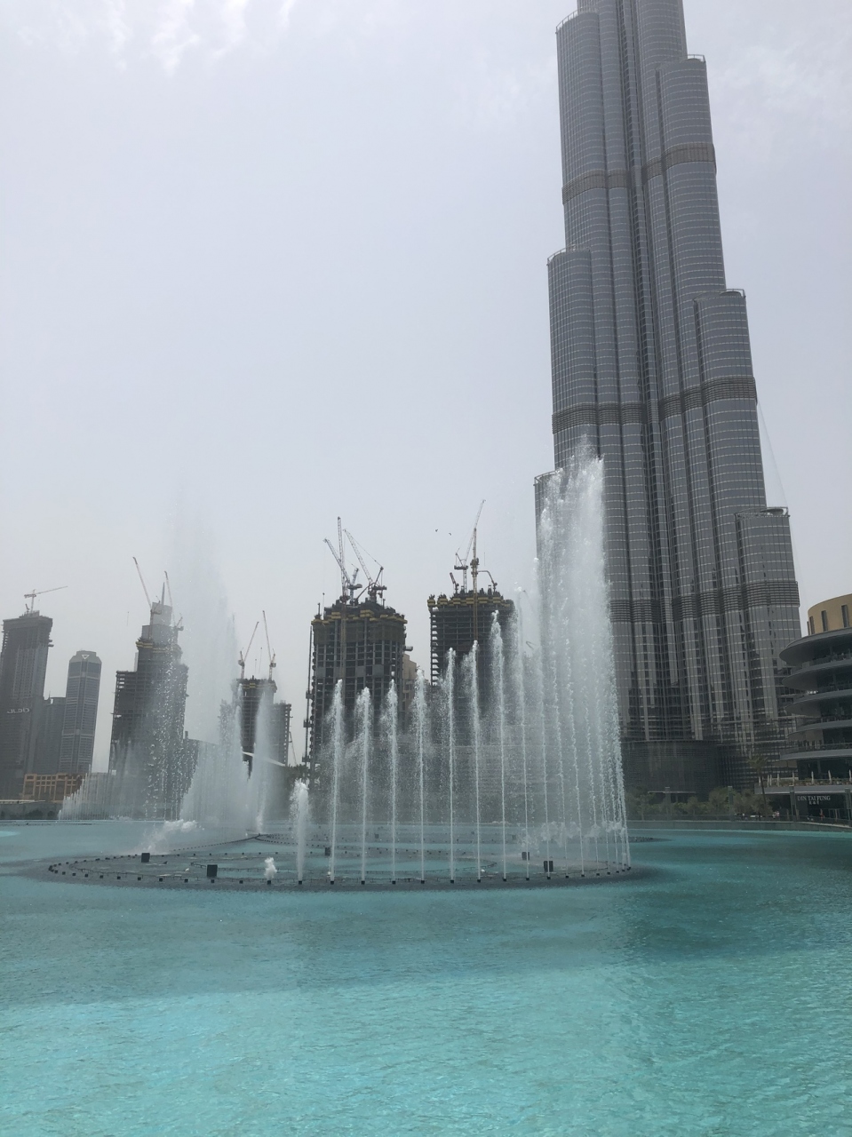 バージカリファ観光の後に訪れました。本当は夜に観たかったのですが、時間の都合で鑑賞は昼の時刻に。ちょうど13時からの回があったので、それに合わせて観にいきました。噴水は勢いがあって高さもあり、なかなかの迫力。昼でも見応えありといった印象です。時間は短めで、あっという間でしたね。鑑賞自体は無料です。