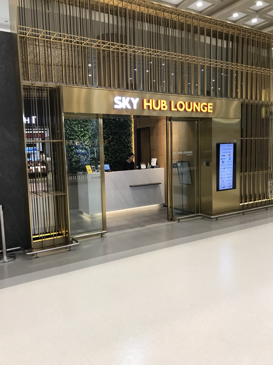 金浦空港は、以前は入管手続きの前のフロアにラウンジがありましたが、現在取り壊しの最中でなくなっています。そのため、ダイナースクラブのホームページでも金浦空港のラウンジの表示はなくなっていますが、入管手続き後、セキュリティゾーンに出た正面に「SKY HUB LOUNGE」ができていて、ダイナースクラブカードを提示すると入ることができました。