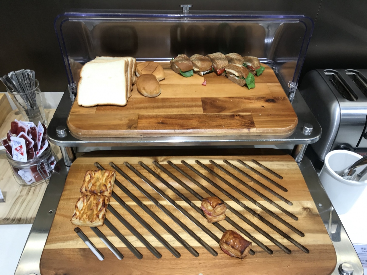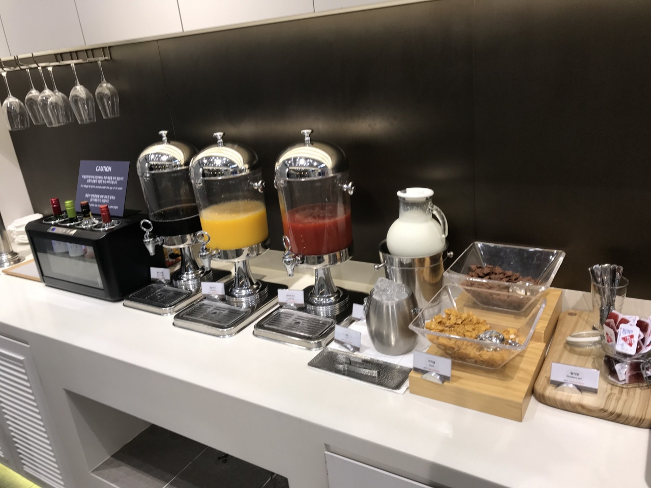 以前のラウンジと内容はほぼ同じで、ご飯を盛ってビビンバを各自自分で作ることができます。おいしいです。また、サンドウィッチ類がとてもおいしかったです。フードがとても充実しています。