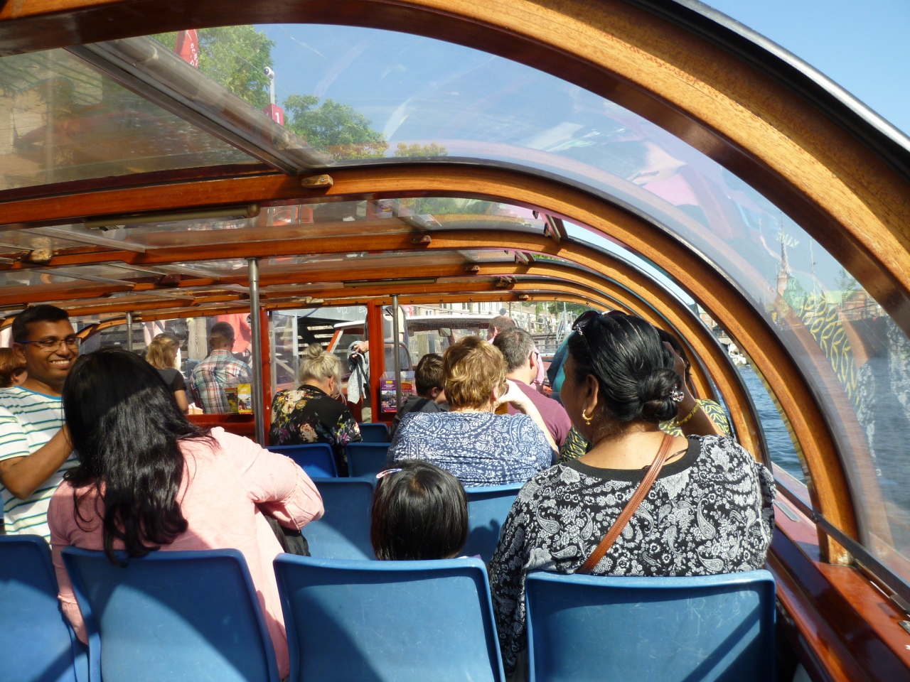 水運の街、コペンではたくさんの橋が架かっているが,中には水面からかなり低いもの・横幅も狭いものもあり、観光船もこれらの橋の下をくぐるので、橋の状況に合わせて造らている。高さを抑えて、平べったい形。
