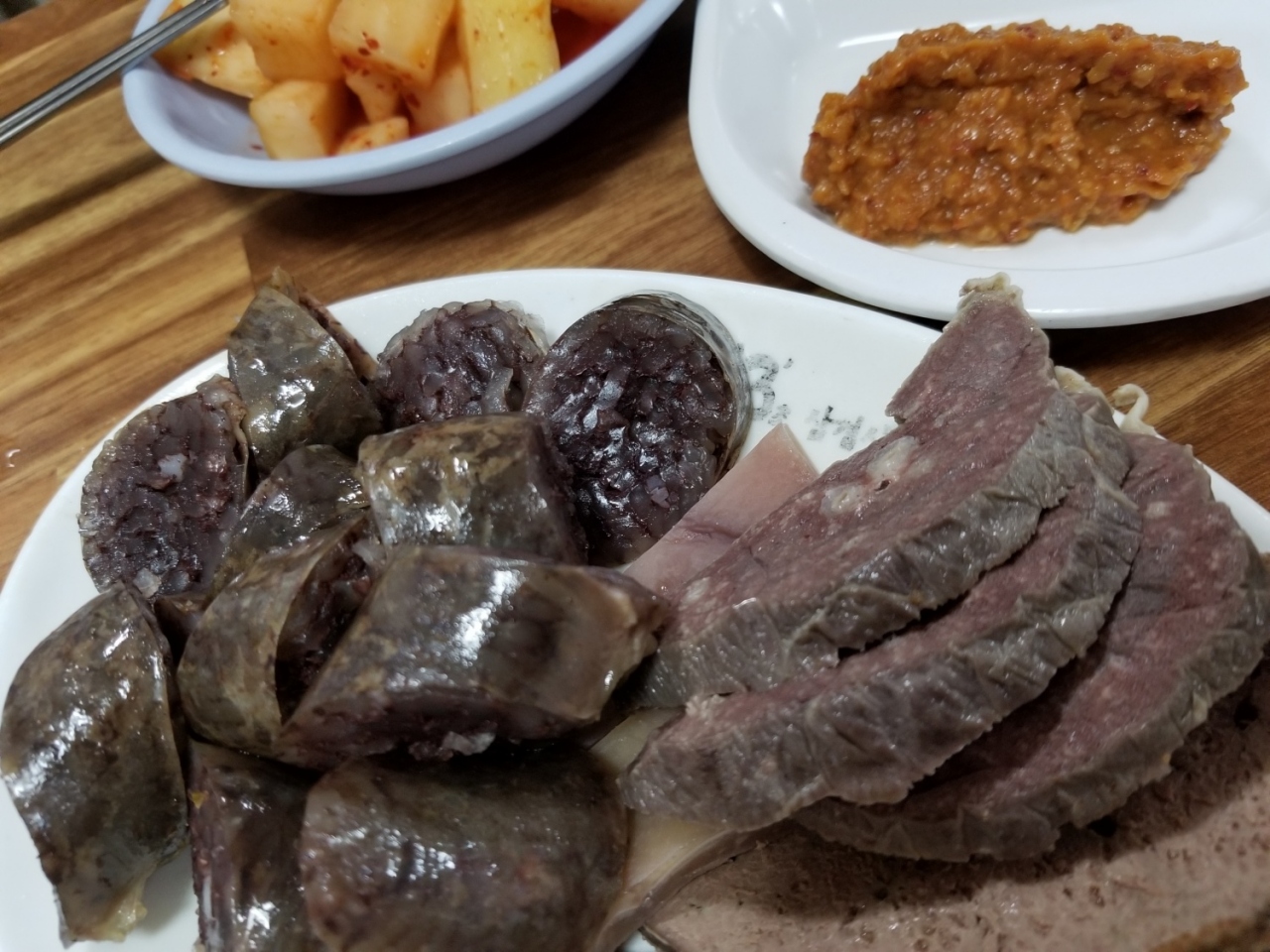 スンデとレバーの盛り合わせやお野菜等が出てくるので