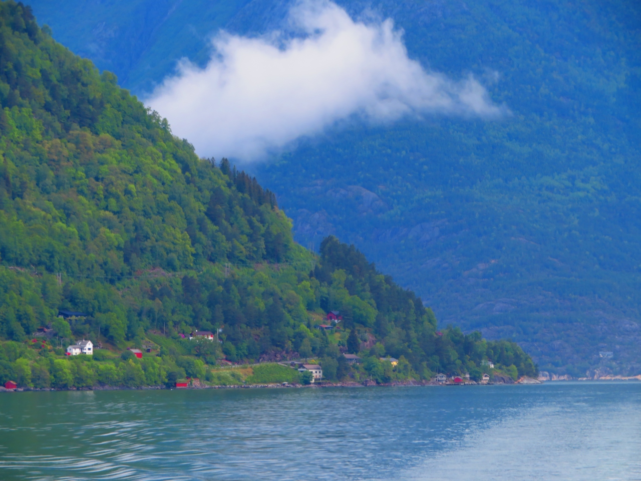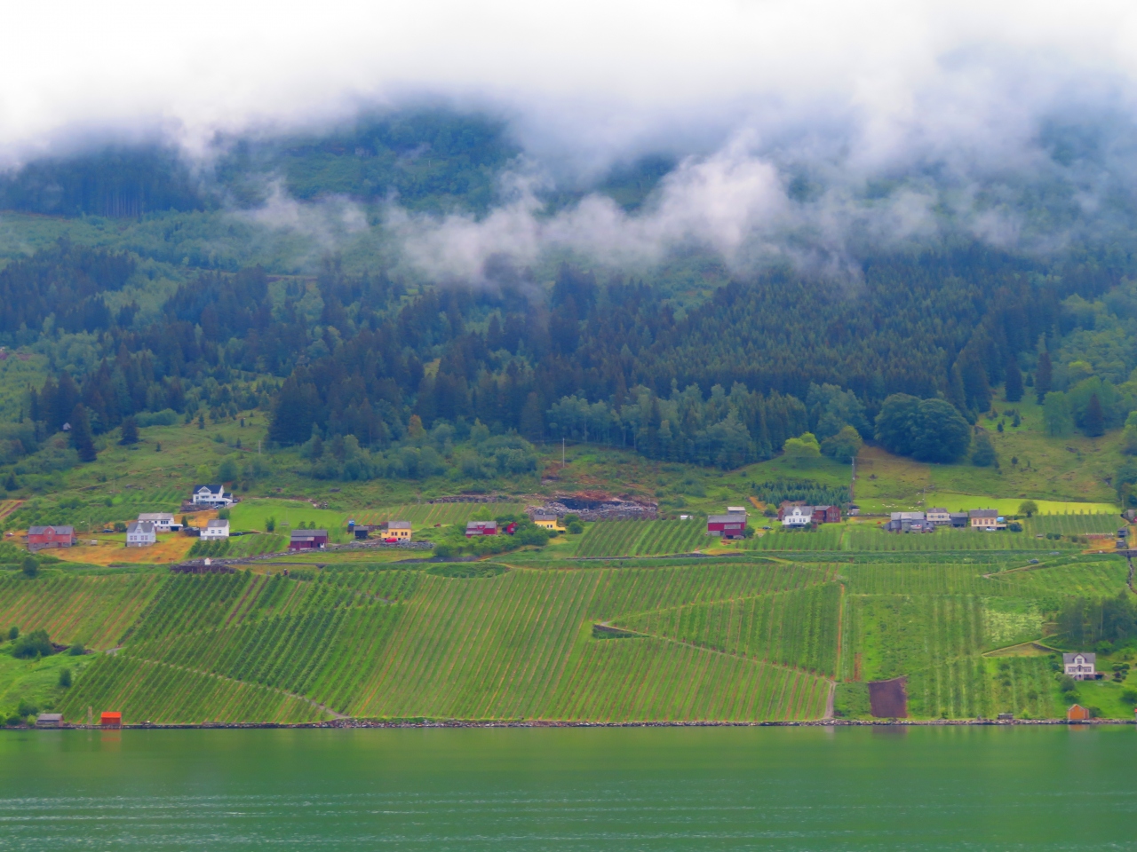 数あるノルウェーのフィヨルドの中でも、ハダンゲルフィヨルドは緩やかな稜線の山々が連なる牧歌的な景観が特徴のとても心癒される景色が広がっているフィヨルドです。