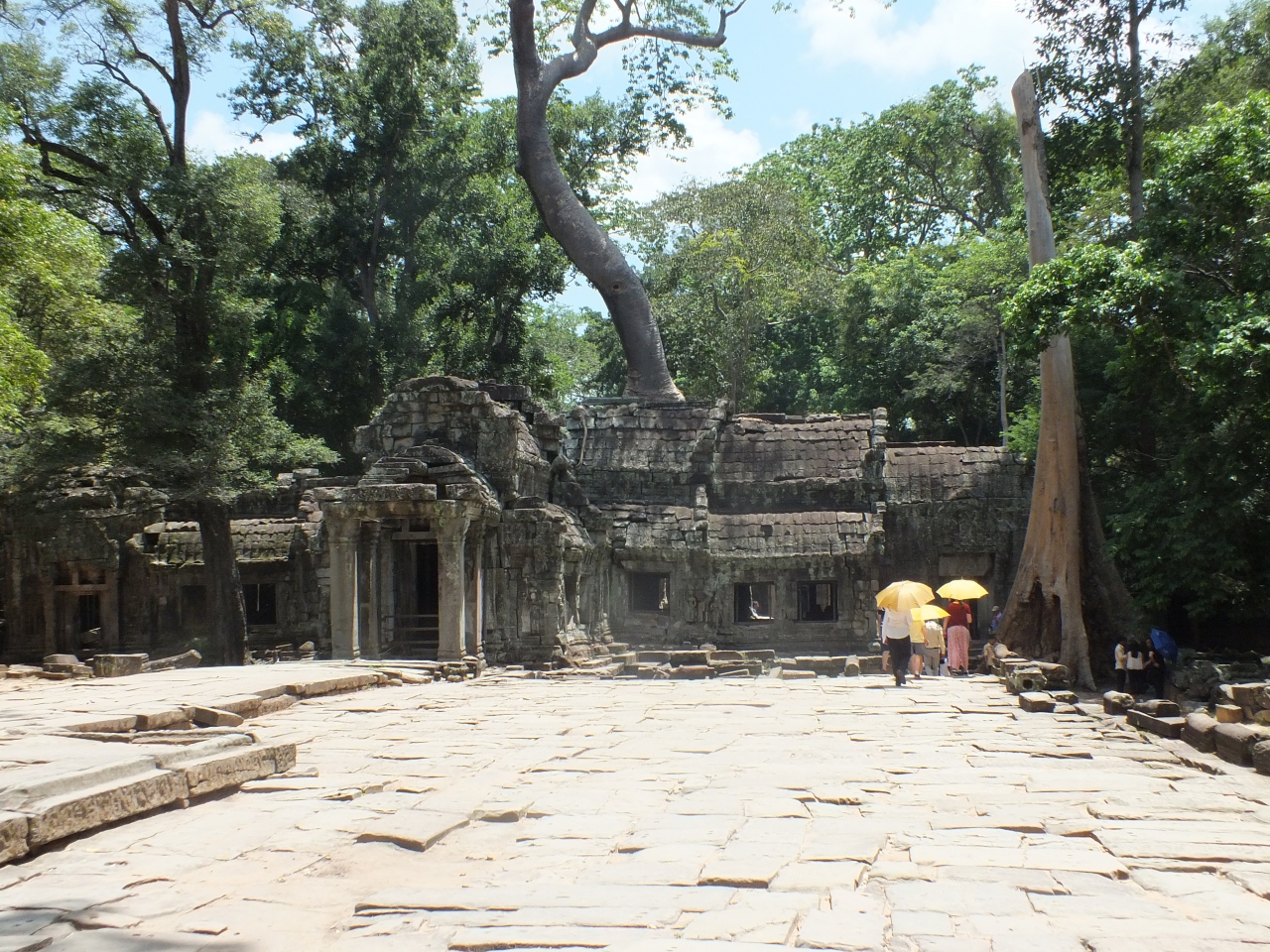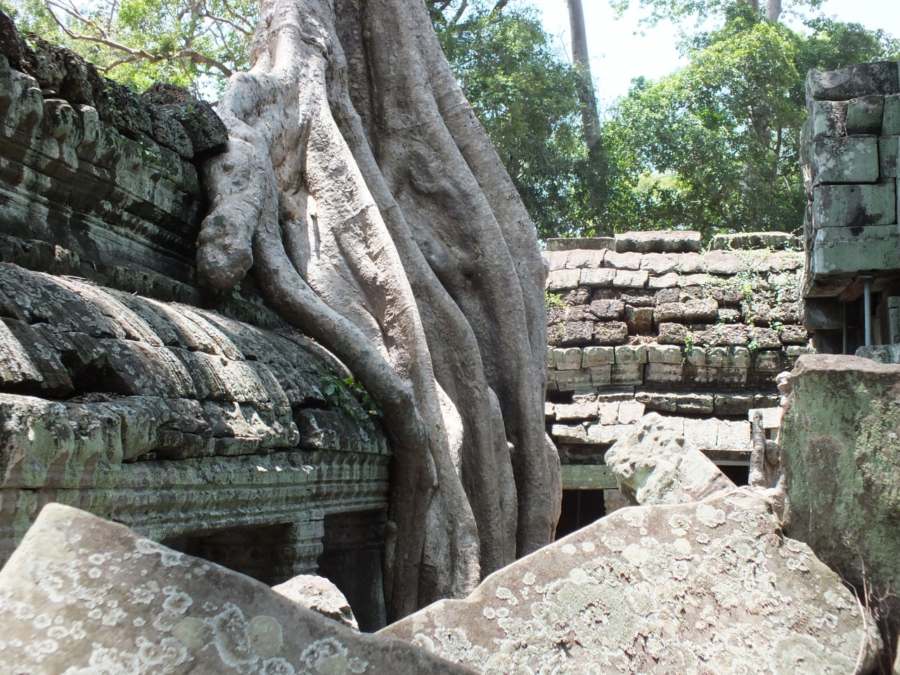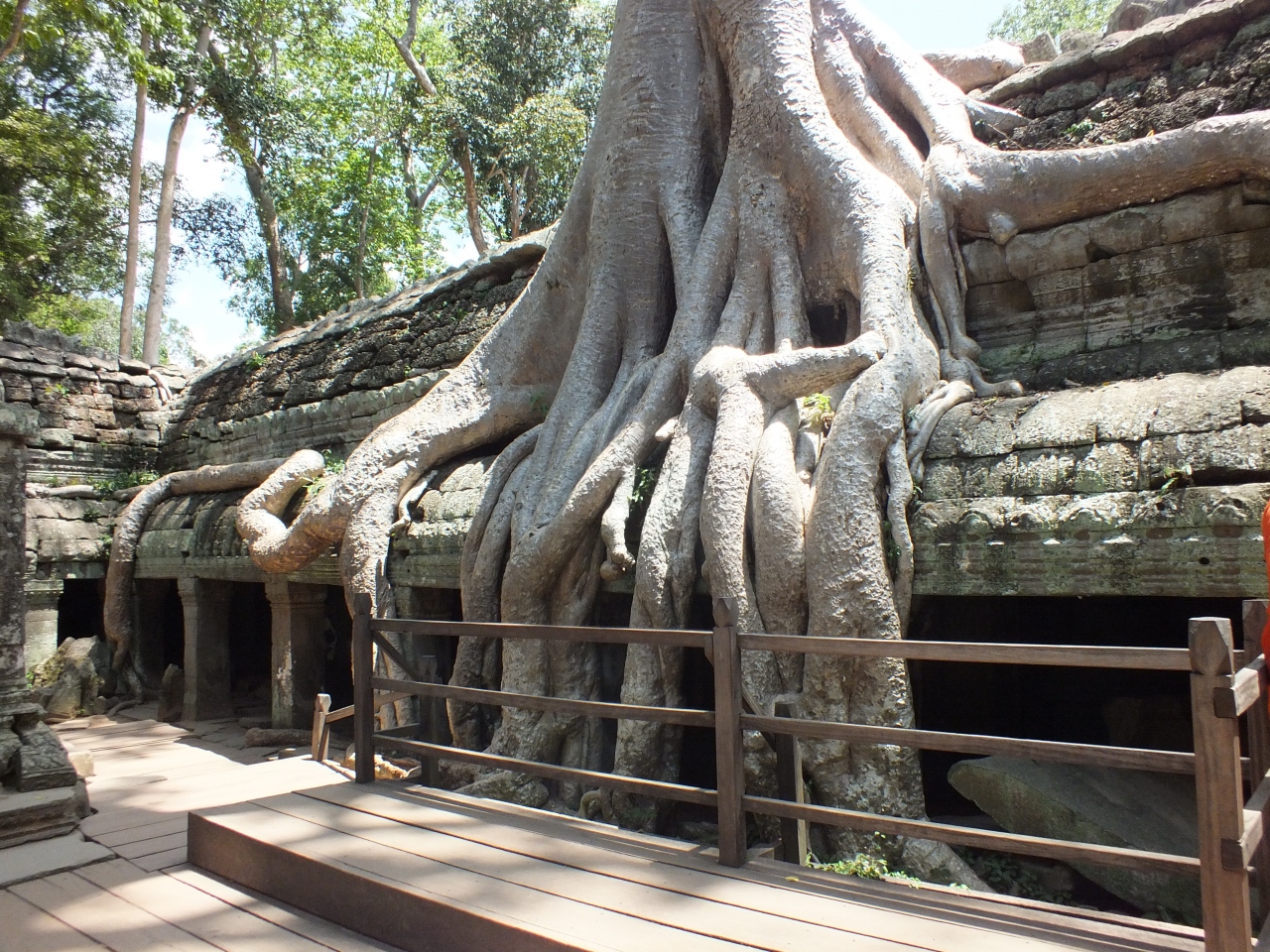 遺跡の中には、大きな木の根が遺跡を包み込んでいます。