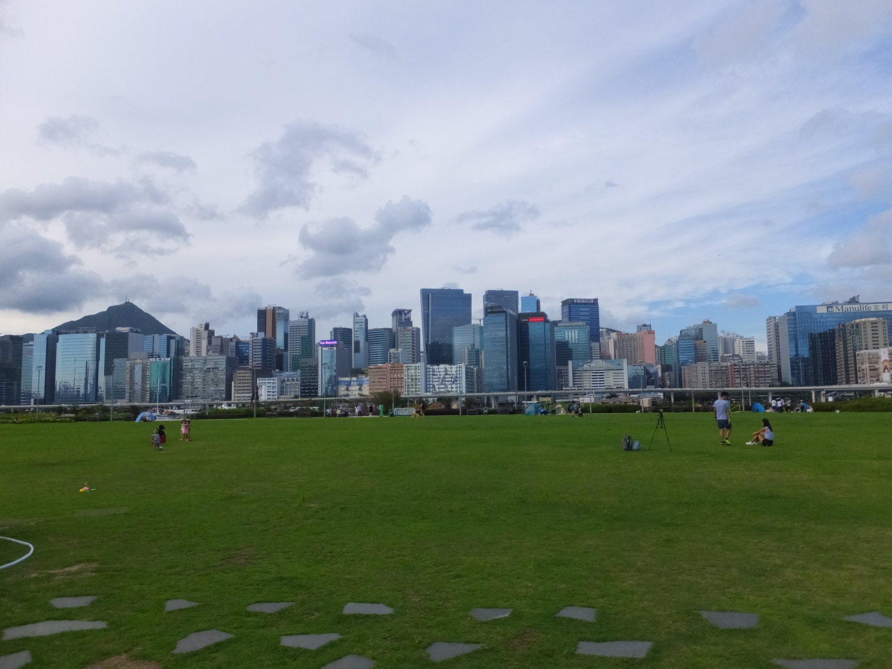 そこそこ広い公園は旧滑走路の先端部分にあり、香港市民があちこちで寛いでいました。中にはテントを張っている人も。