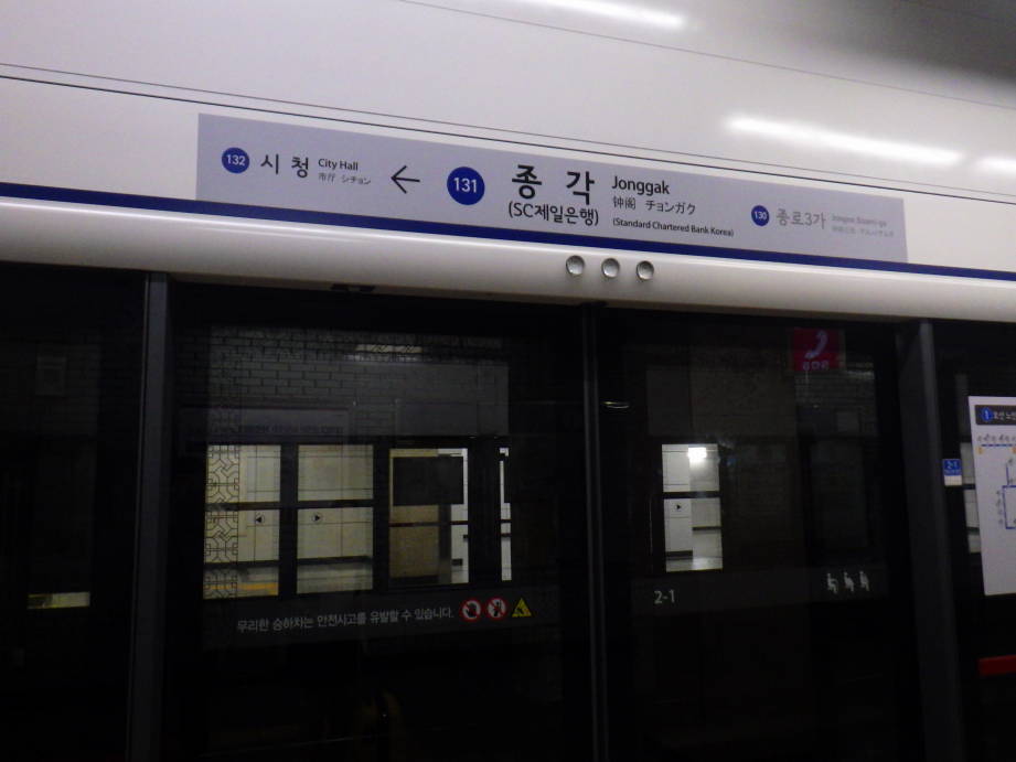 鍾閣駅から地下鉄1号線でソウル駅まで行きました。ソウル駅までは2駅でした。鍾閣駅からはちょっと歩けば清渓川にも明洞にもロッテ百貨店にも広蔵市場にも仁寺洞にもいかれるのでとても便利なエリアだと思います。