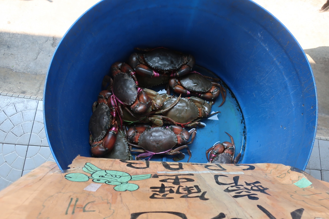 メニューはどの店でも大差がないが、店頭に活きたカニを出していたので値段を聞いて、納得して入店。カニのチリ炒めと貝の蒸したものを注文。カニ島とはいえ、今は大きなカニは輸入物がメインなのでクアラルンプールで食べても同じかもしれないが、市内アロー街屋台で食べるより安かった。1匹半入って80RM。