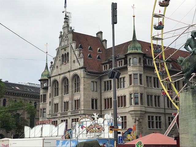 チューリッヒ駅から、リンデンホフの丘、聖ペーター教会、フラウミュンスター 教会と歩いて巡りました。フラウミュンスター 教会の横に立派な建物があり、調べてみると市庁舎でした。チューリッヒにはRathausとStadthausの2つの市庁舎があるようで、こちらはStadthausの方です。ミュンスター橋を渡って眺めると、フラウミュンスター 教会と並んで見えて良いです。