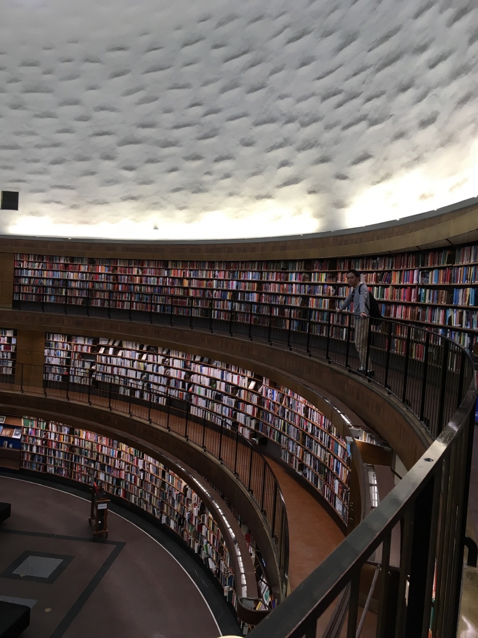 地下鉄ロドマンズガータン駅から歩いて3分ほどで丸い煉瓦色の建物が見えます。モダン建築の巨匠エリック・グンナール・アスプルンドによって設計された円形になっている図書館で360度本に囲まれた内部はため息ものでした。ひとつ残念なことはトイレが有料。市立図書館なら無料にしてほしい