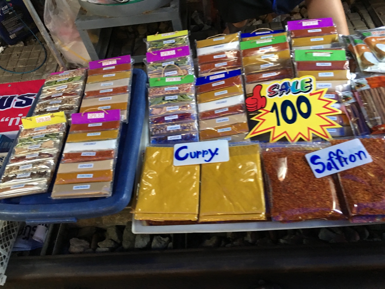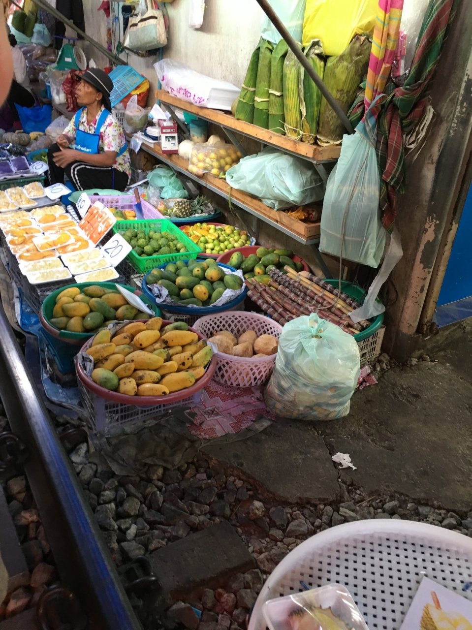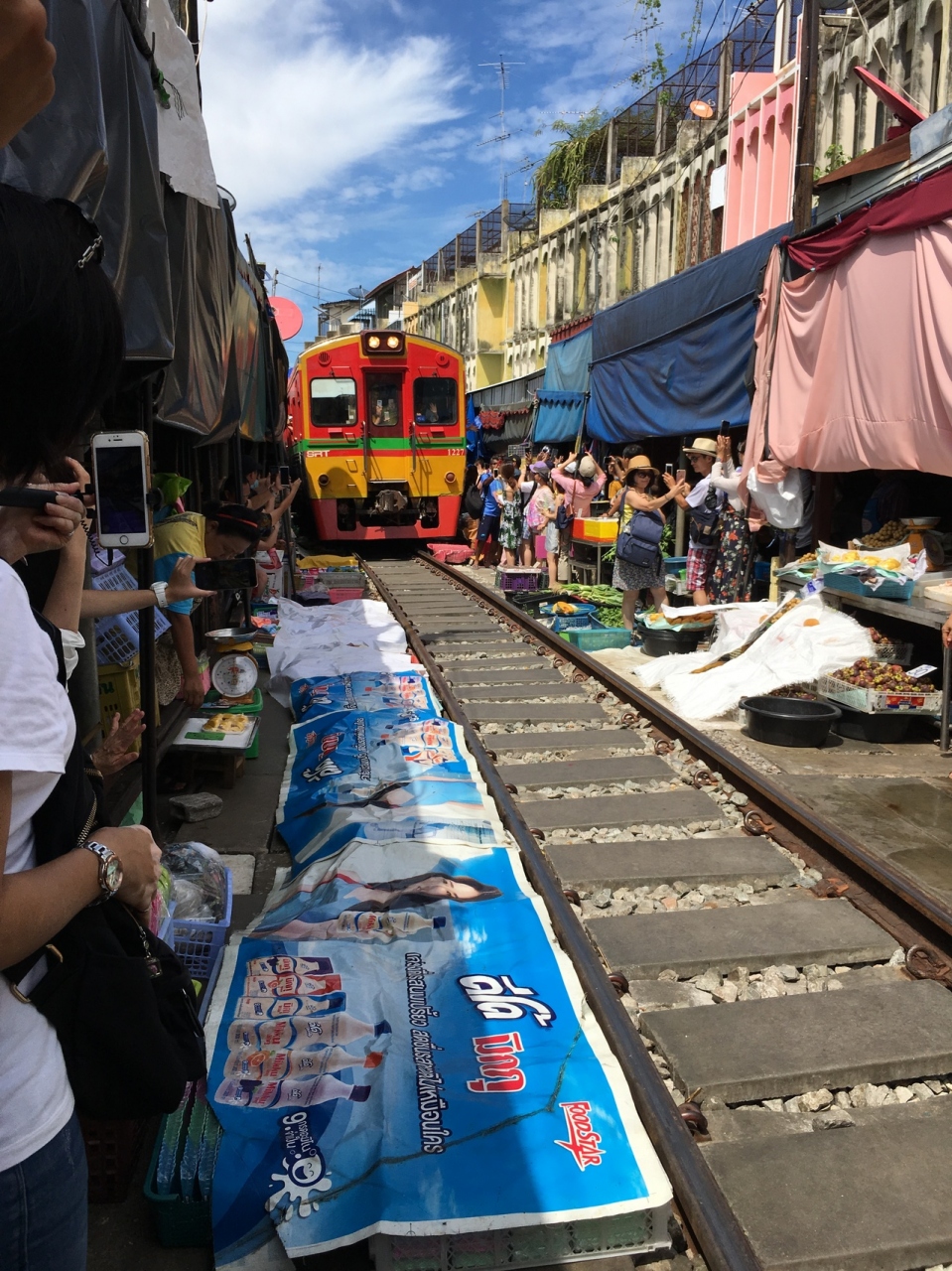 日本人にも有名なメークロンマーケット。土曜日ということもあって、多くの観光客で賑わっていました。午後2時半の電車の通過を見ましたが、予想以上のスリルです。ギリギリのところを通るので、線路にでて写真を撮っている人がいると、現地の人が売り物のフルーツを投げて怒って注意していました。