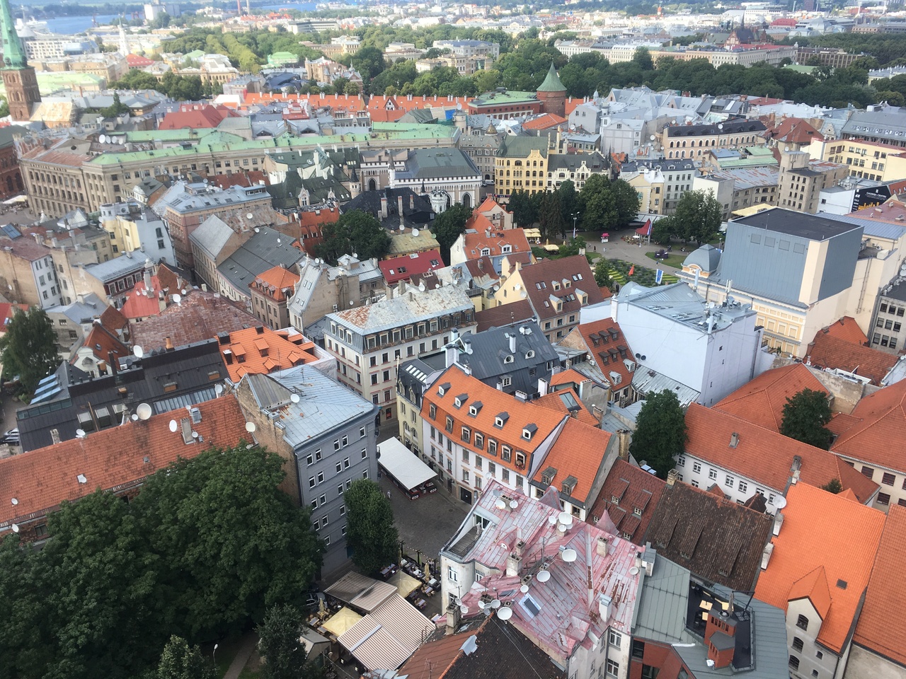 この歴史地区にはハンザ同盟の中心となったドイツ商人が作った街ということで中世ドイツ建築が残る美しい街並みです。中心に立つ聖ペテロ教会の塔に登るとその全貌が見て取れます。色合いのきれいな歴史的建造物があちこちに立ち並び感動すること請け合いです。まるでミニチュアのおとぎの国のようでした。