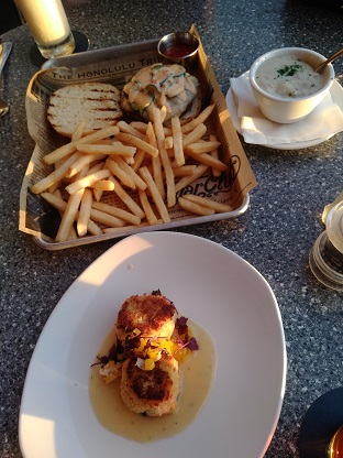 ハワイで育った牛のお肉を使ったハンバーガーが美味しいので、もしレストランなどにあったら食べてみて!とガイドさんに言われていたのでオーダーしたところ、たしかに臭みもなく美味しかったです。つけあわせのポテトも大量で久々のジャンクフードに満足しました。