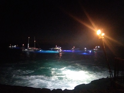 夜遅い時間であればマンタがみれるとので8時ぐらいまで粘りましたが、この日はマンタを見ることは出来ませんでした。マンタを見るための席もありサンセット前から飲み物を片手に場所取りしている人が多かったです。