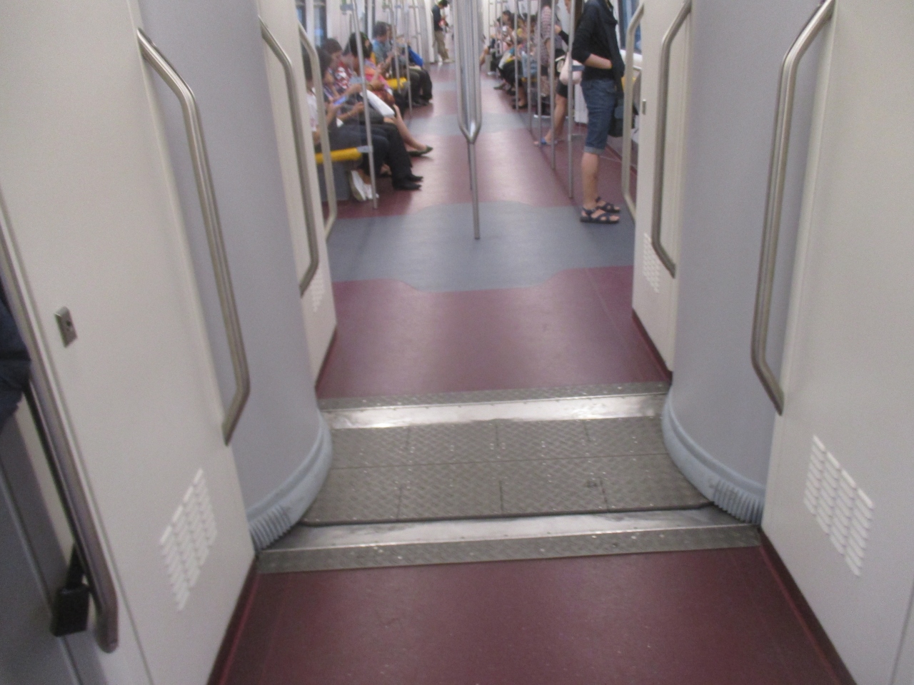 7月の滞在でもBTSを利用しました。滞在中10回は利用しますね。最近は混雑緩和のため椅子を少なくしている車両が多くなってきており、たまたま乗ったBTSは一部椅子がないタイプでした。地下鉄に続き、ついに、BTSも椅子がない車両が登場しました。これだけ広いとたくさん乗車できるのですが、それでもラッシュは緩和されないように感じます。