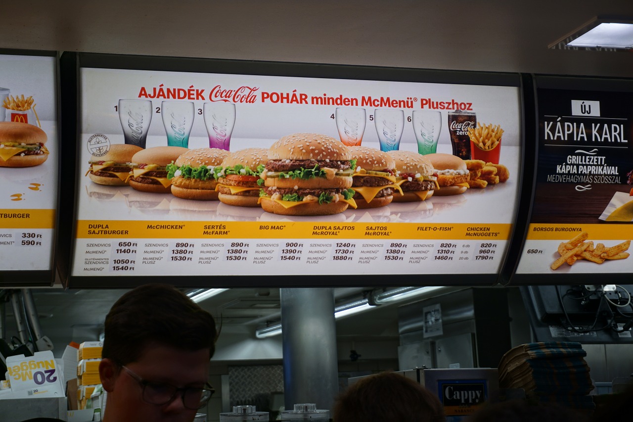 ブダペストでランチと言えば、マクドをチョイスして頂きたいです。というのも、世界一美しいマクドだからです。内装が豪華です。値段は、普通なので、とても利用しやすいかと思います。お店の回転率も、決して悪くはありません。西駅を利用する際、ネタ的にも面白いかと思いますので、のぞいてみてください。