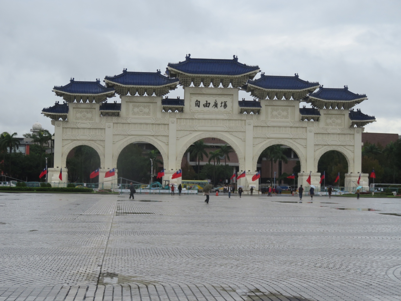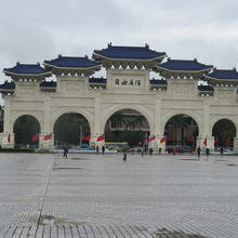 中正紀念堂へ向かう時にある多きな門です。幅はないのですが高さがあるので迫力があります。広場や紀念堂も大きいのでちょっと感覚マヒしちゃうかも。近くで写真を撮ろうとすると収まらす大きいのだなと。台北を代表する観光地なので人もたくさんいました。