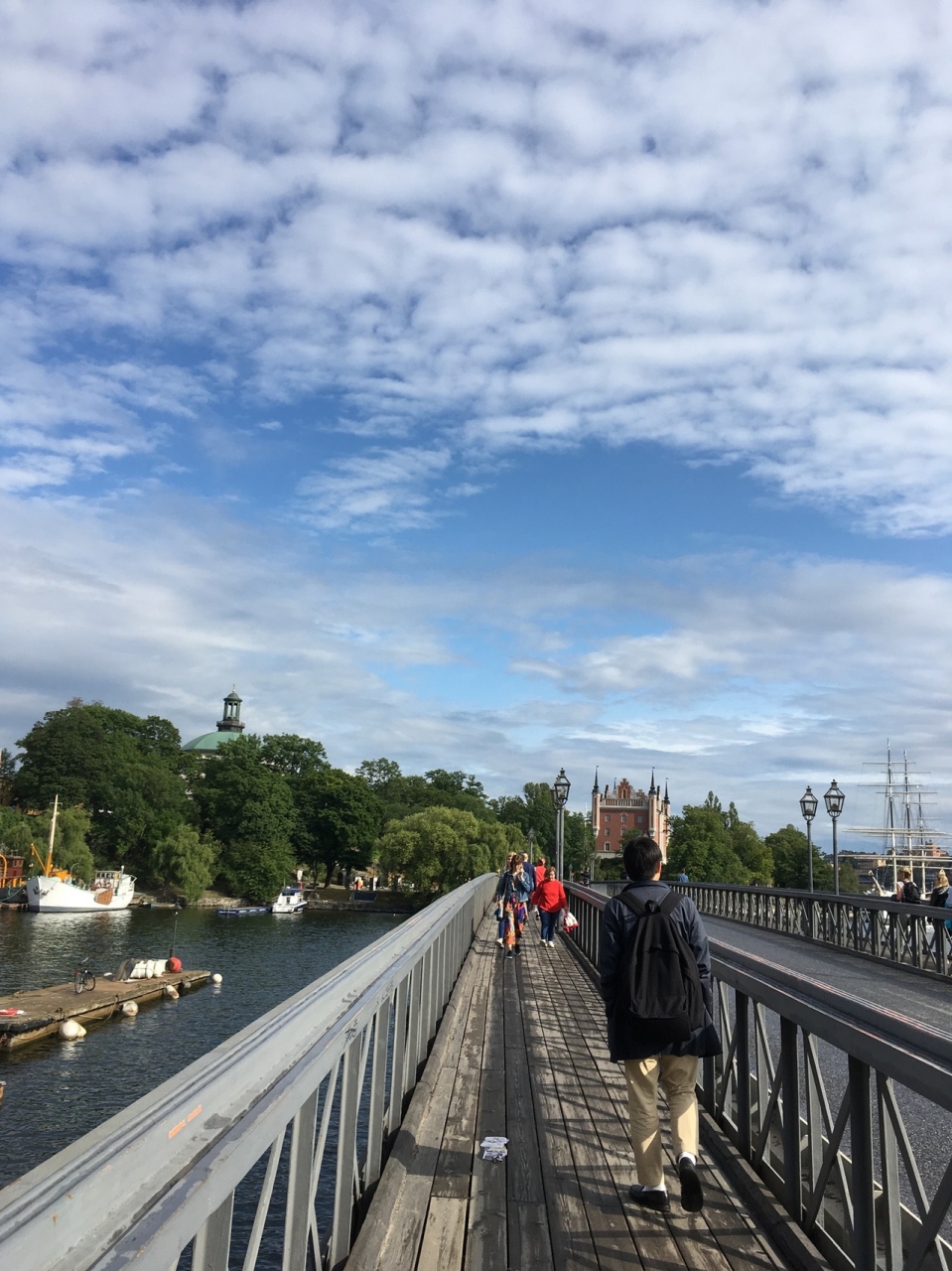 国立美術館からシェップスホルメン島にある現代美術館に行く際に渡る橋で、橋の中央に黄金の冠の飾りがあり皆さん写真を撮っていました。橋から見える景色はとても美しく水面に太陽光が反射してキラキラしていて感動しました。ストックホルムに来たなと実感する場所でした。