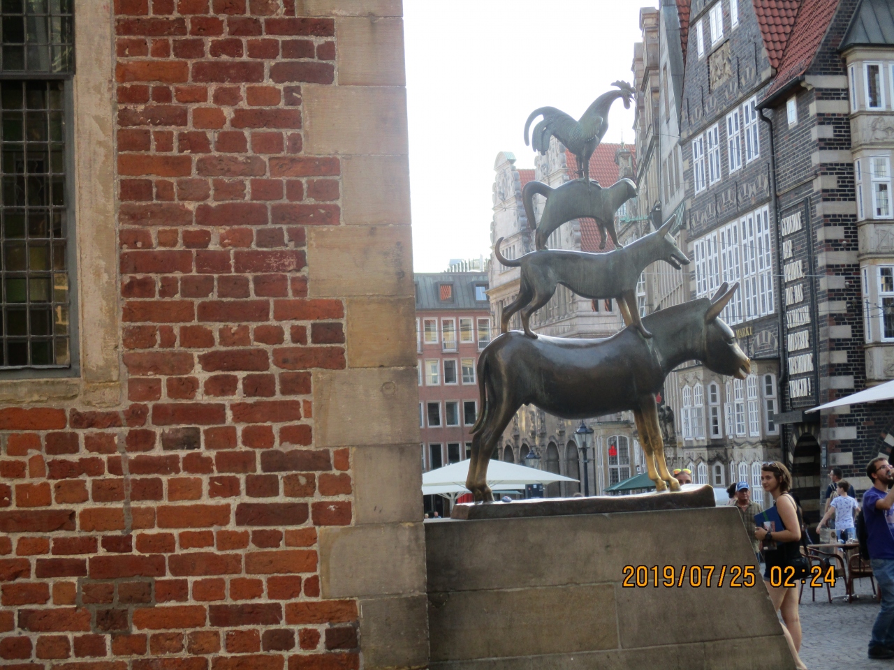 あまりに有名な市庁舎の動物の像はいつ行っても記念写真撮る人でいっぱいです。さらにマンホールに10セント以上のコインを入れるとアットランダムでろば・いぬ・ねこ・とりの鳴き声が聞けます。また日曜は路上劇もみられます。