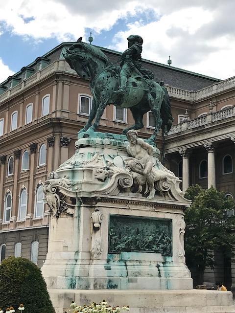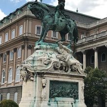 ブダの王宮の国立美術館の正門前にある騎馬像です。ブダペストでは初代ハンガリー国王の聖イシュトヴァーンの像をあちこちで見かけるので、これも聖イシュトヴァーンかと思ったら、オスマン帝国との戦いで勝利したオイゲン公の騎馬像でした。躍動感あふれる姿で、多くの観光客が写真を撮っていました。