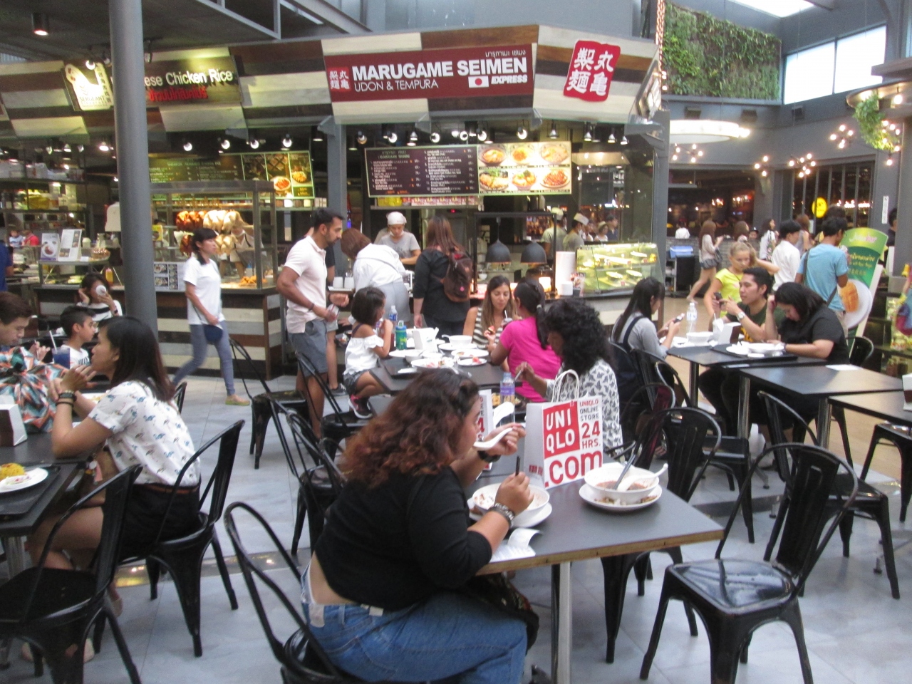 バンコク市内に丸亀製麺はたくさんありますが、ショッピングセンターのフードコートに入っていることもあります。サイアムセンターのフード リパブリックの一角に入っていました。セルフ式のうどん屋さんで、メニューはぶっかけうどん、ざるうどん、釜玉うどんなどあります。ちくわの天ぷらやおにぎりなども置いてありました。日本と同じスタイルで讃岐うどんが食べれました。