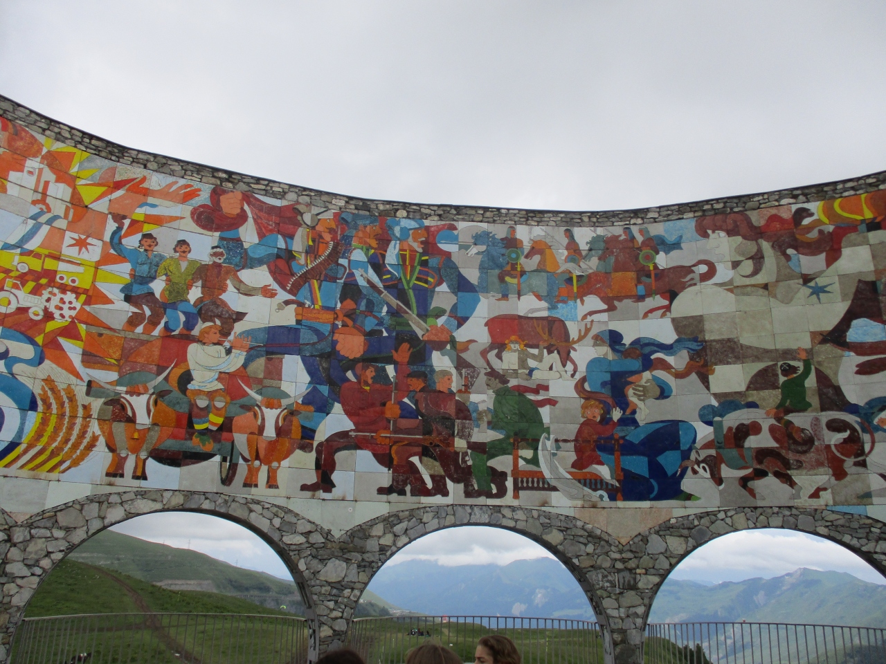 個人旅行でトビリシに3泊した際に、現地の日帰りツアーに参加してカズベギ方面に行きました。行きは車窓から眺めるだけで、カズベキからの帰りにこちらに立ち寄りました。モニュメントそのものよりも周りの風景のほうが楽しめると私は思いました。