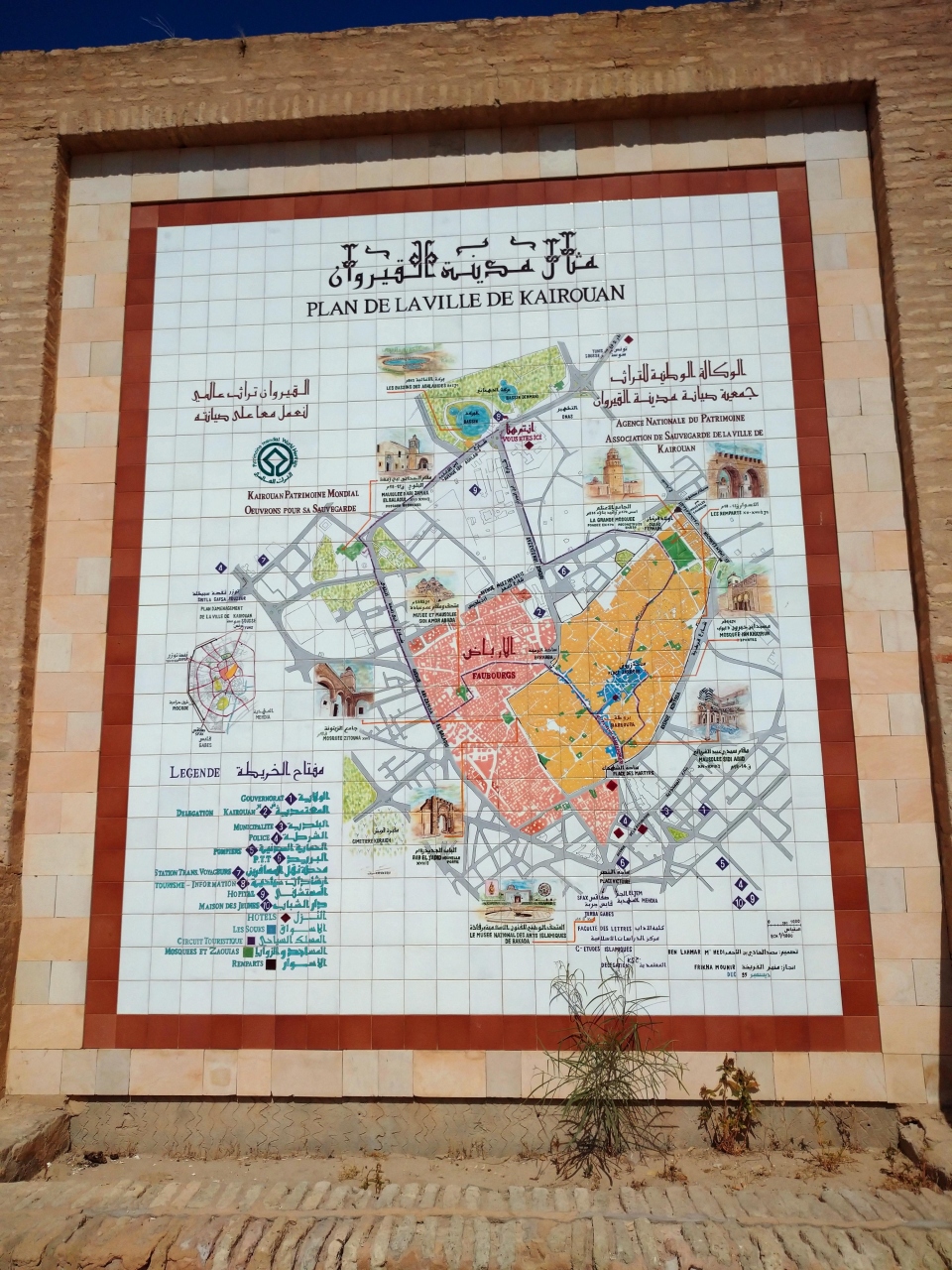 9世紀、アグラブ朝時代に14個造られ今では2個残っているとのことです。傍の建物の屋上からは、水を湛えた円形の貯水池が間近に見えました。屋上まで階段を上る時に年配の人がオイルを手に塗り付けてきたので不審に思っていたところ、その人が降り口で満面の笑みを浮かべて立っています。どうやら土産物屋の主人のようで、「どこから来たか」と聞かれたので、日本と答えると、「地球の歩き方、地球の歩き方」と連呼します。地元のガイドさんが通訳してくれ、129ページの写真が主人の若かりし頃だということがわかりました。結局、ジャスミンオイルとサボテン石鹸(合計10ディナール)を買う羽目になりました。念のため、ご主人の今の写真も撮っておきました。