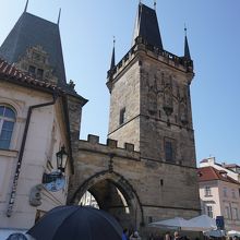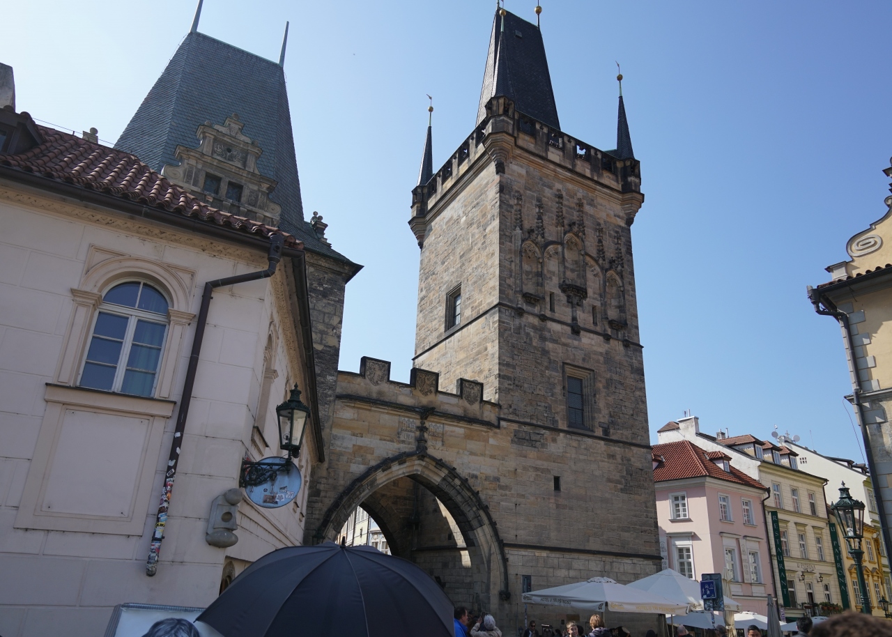 プラハ1の観光名所カレル橋には、橋の両側に塔がありましたが、まったく形も大きさも違います。こちらはプラハ城側の橋塔。反対側の塔に比べると少し地味な感じですが、カレル橋の前身ユディタ橋のときからあるものだそうです。