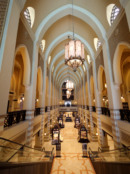 ドバイモールから橋を渡ってすぐですが、ドバイモール内の混雑に比べると、スーク アル バハールはほとんどお客さんがいなくて閑散としていました。館内の無料Wi-Fiも入口付近でないと繋がらず、ちょっと不便でした。ただ、ドバイファウンテンを見るなら、こちら側のほうが人が多少、少なくて、見やすかったです。トイレやスーパーでの買い物も、こちらのほうがドバイモールよりは歩く距離が少なくてすみます。