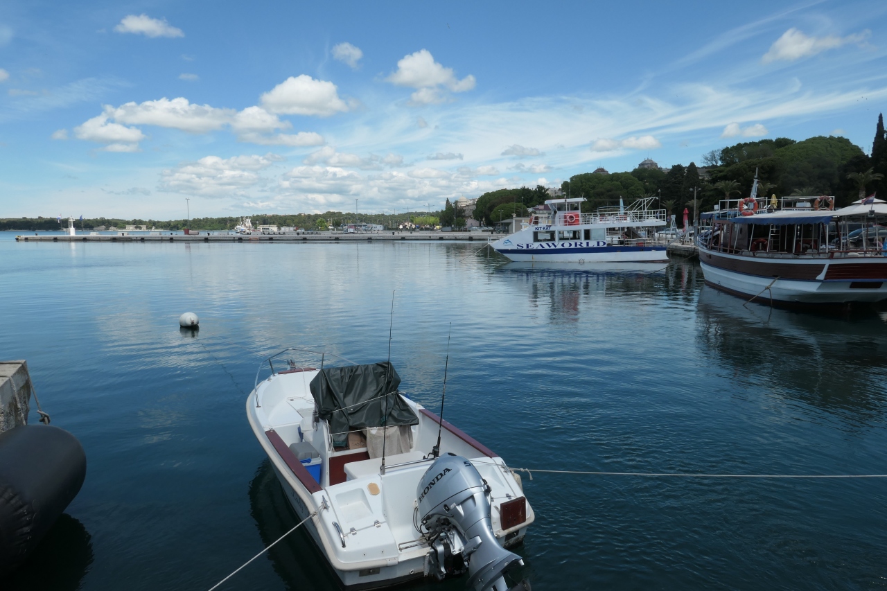 ACIマリーナ(ACI marina Pula)はプーラ旧市街の北側にあるヨットハーバーで、海岸を通るリヴァ通り(Riva)沿いにあります。リヴァ通りは円形劇場などの観光の際に利用するのではないかと思います。マリーナには小型船やヨットが沢山停泊していますが、プーラを訪れる観光客が急遽の思い付きで利用できる施設では無いように思います。マリーナの近くの波止場に、小型客船や観光客用のボートなどが停泊していました。こちらは利用可能です。